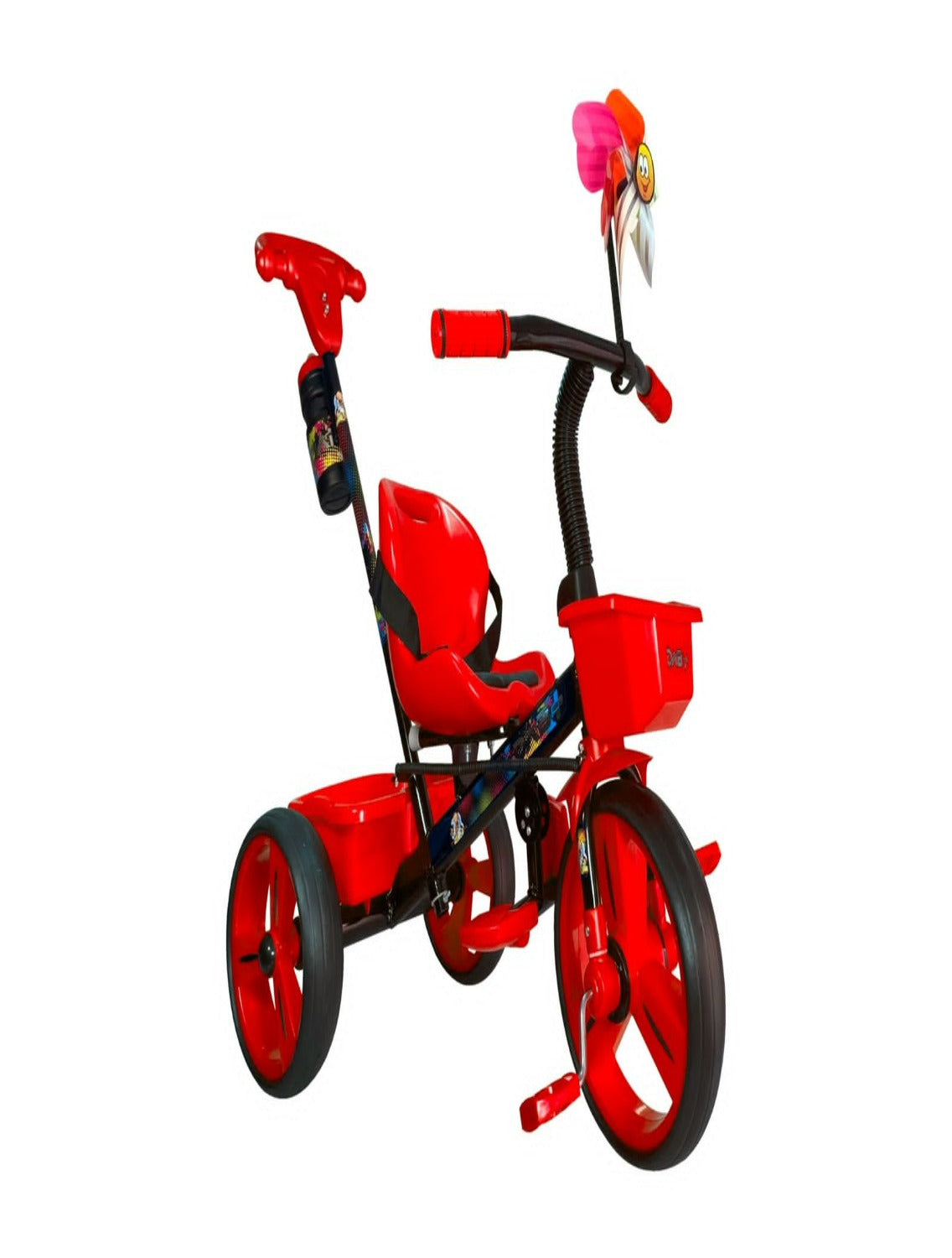 - CUSHIONED PARENTAL CONTROL: Not just Parents, now even Elder Siblings can manoeuvre the Tricycle.