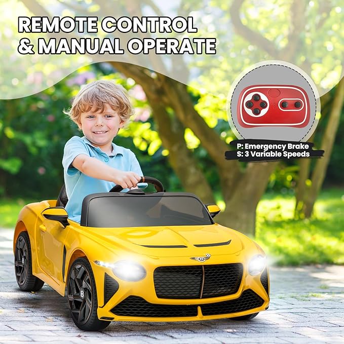 - PERFECT GIFT: This kids ride on car is licensed of Bentley, made with high-quality PP material for durability and a visually appealing design. With its superior texture and attention to detail, it makes a perfect gift for kids on birthdays, parties, and holidays like Christmas and New Year's.