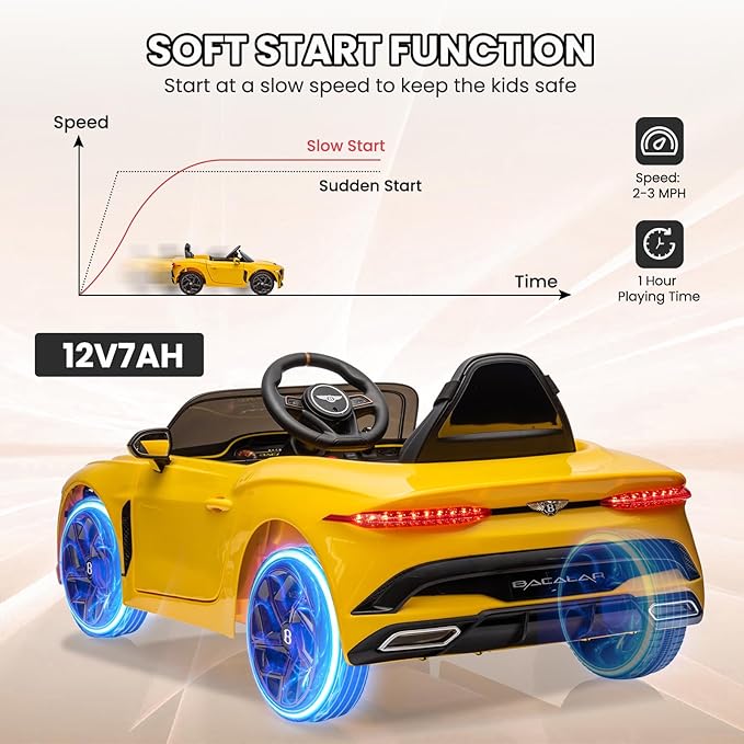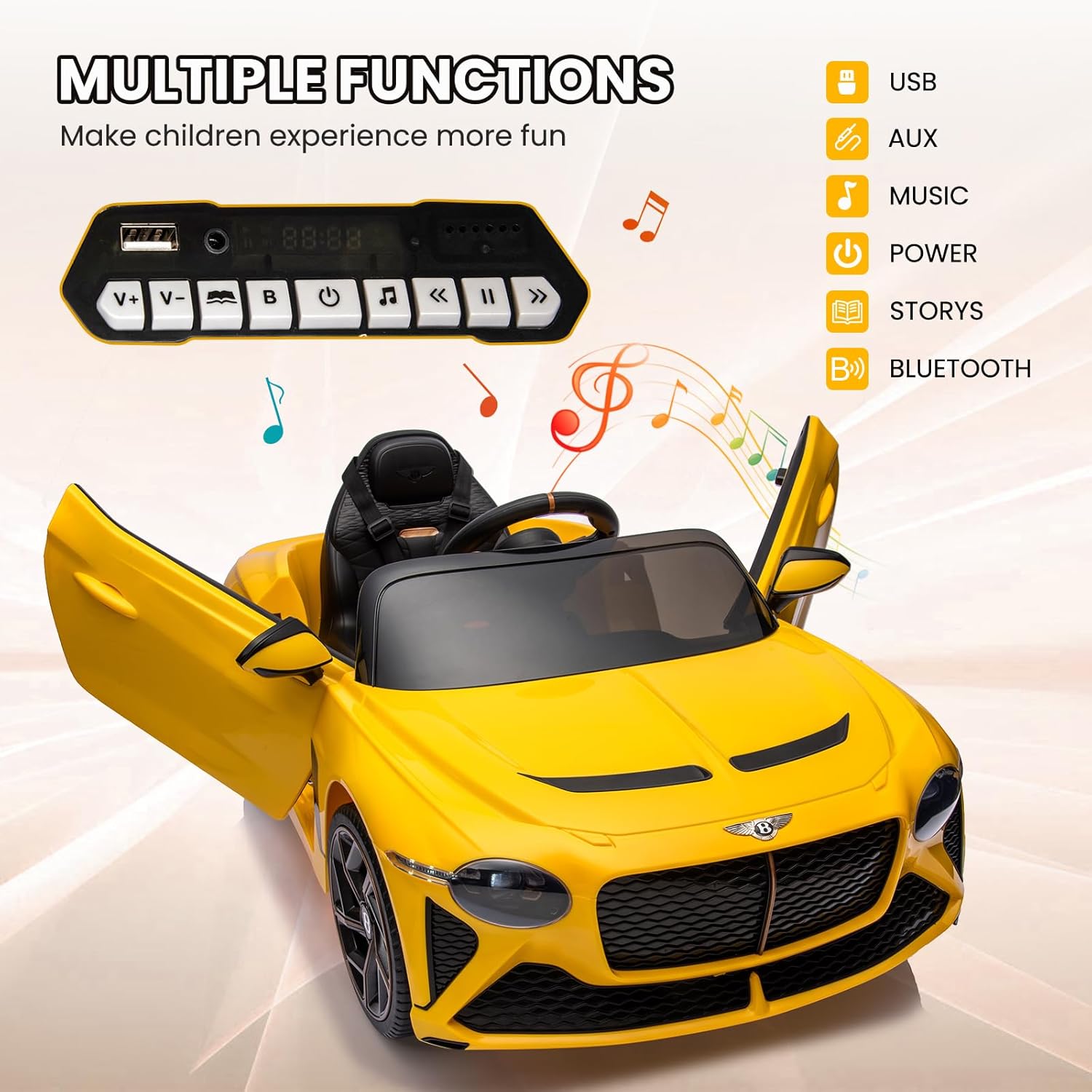 12V Ride on Car, Licensed Bentley Bacalar Kids Electric Car w/Parent Remote Control, 3 Speeds, Scissor Doors, Music, LED, Kids Cars to Drive Gift for Boys Girls, Yellow