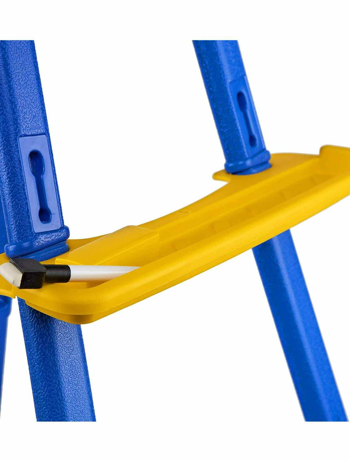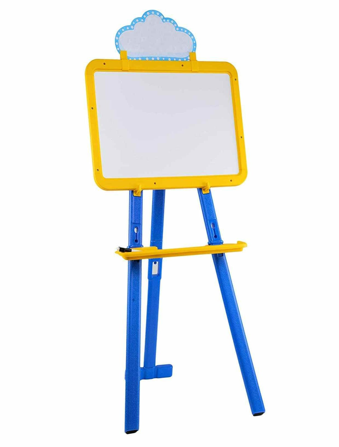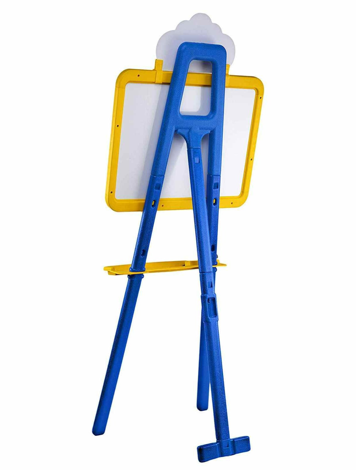 Make your kid's learning time more interesting and fun with this Board Easel. This learning board will help you pave a path for the growth of your child's imagination, and will bring in an appreciation for art into his/her life. This easy-to-assemble learning board has a chalkboard on one side, and a white board on the other to let your child draw freely. This Easel takes less than 10minutes to assemble. Once you are done, it folds flat so you can store it anywhere. The writing easel assembles and detaches easily, so if your kids are tired of standing, you can remove the easel from the stand to a portable hand held easel. Children will unleash their creativity, as this easel allows the young aspiring artists to develop their fine motor skills.