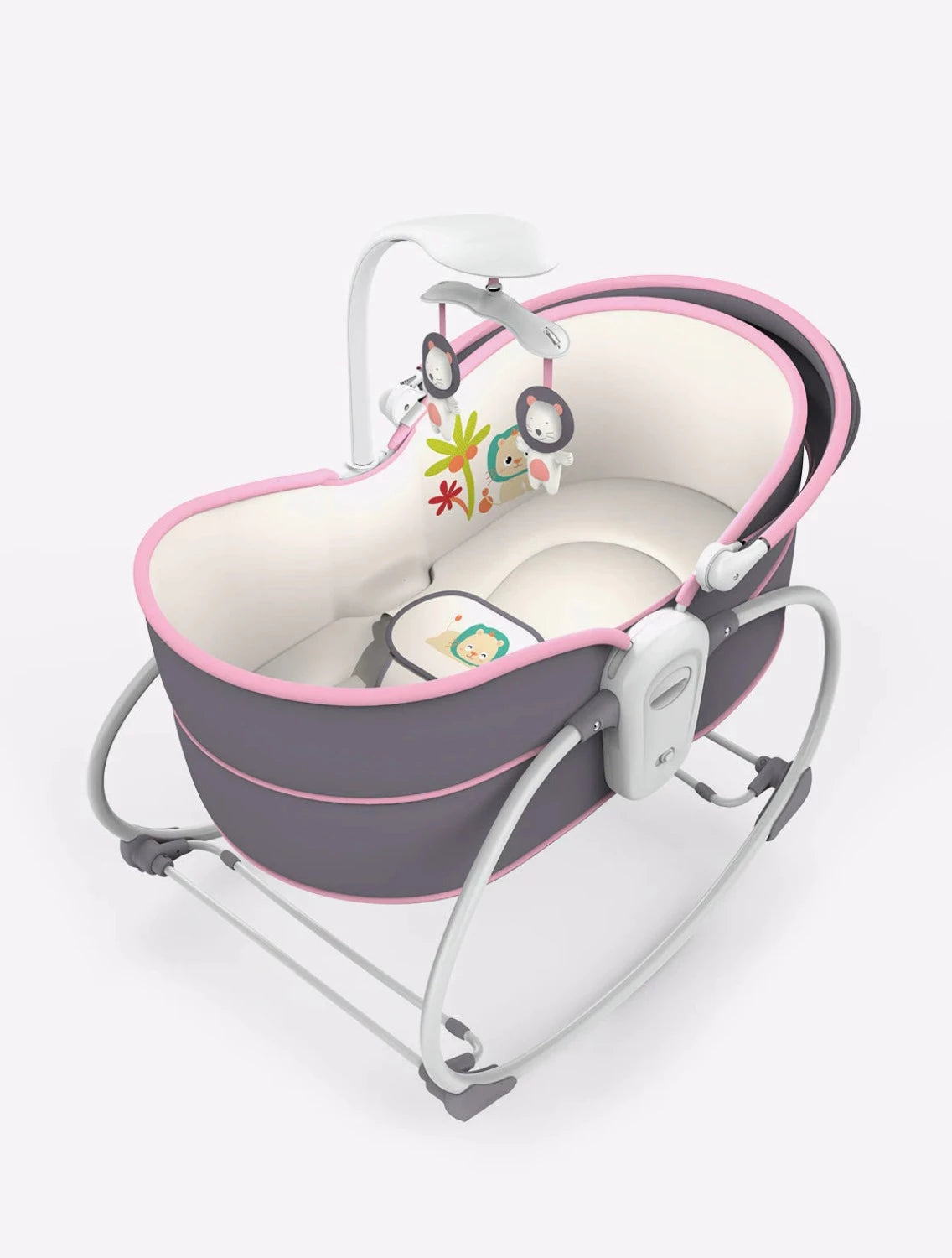 The answer to every parents needs is 5 in 1 Rocker Bassinet makes it easy and simple to switch from play to sleep with one quick step. Baby's development during play and nap is never ending. It is an easy & simple switch from play to sleep for your little angel. Its Super Soft Plush Seat, Engaging Lights, Music Toys, and Gentle Rocking Motion features makes it the east product for the baby. This product has been designed to provide extreme comfort to your child as it easily converts to a cozy flat Napper with raised borders. Its five Reclining Positions and calming Vibrations allows your baby to play independently and safely. Rocker Napper features gentle rocking movements that can help soothe baby and develop body sensation and control. Your baby will enjoy the hanging overhead toys with the music & lights feature. It's light enough for you to easily move from one place to another.