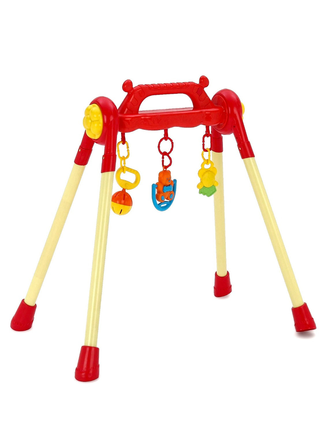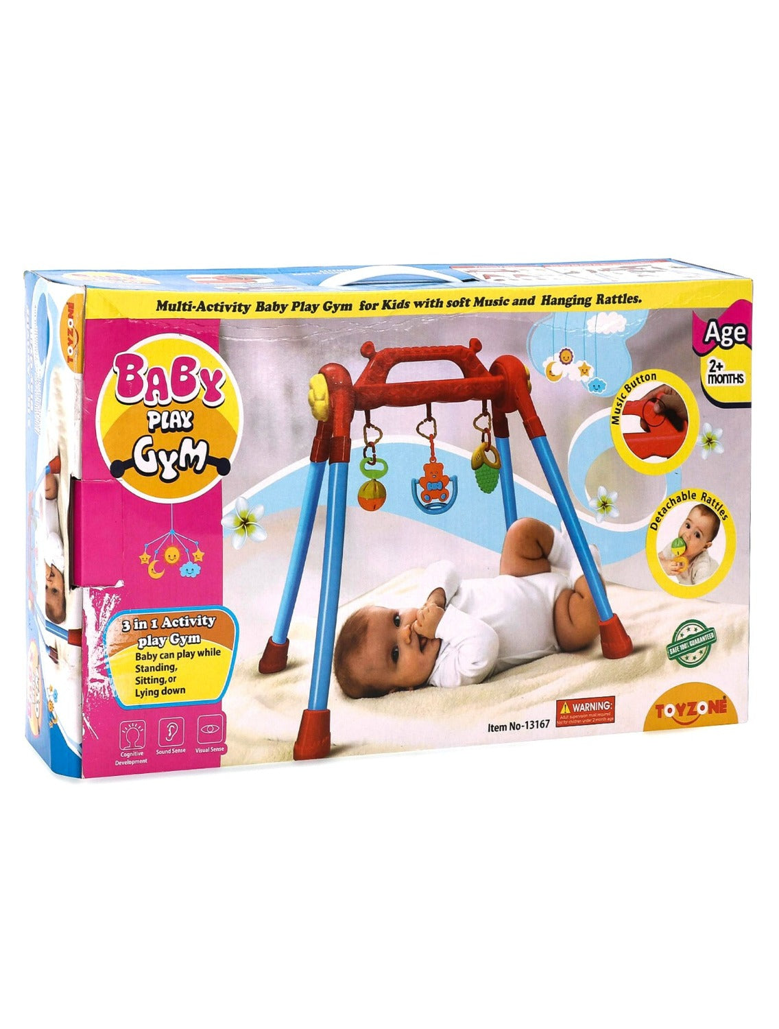 Toy Zone play gym will open the world of senses and play to your child. It is made from high quality durable material perfect for your infant to practice promising motor skills with. The 3 hanging toys is a treat to the eyes. The baby gym also comes round edges perfectly sized for your infant to move around in. No nuts/ bolts and screws ensuring that the interlocking mechanism is easy to assemble and disassemble.