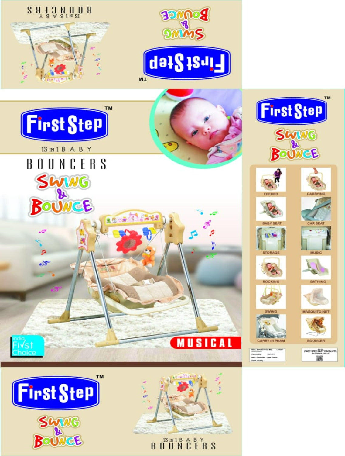 - 5. Can be used as bouncer & A baby seat. Bouncer attachment included. Internationally accepted design for extra comfort. Please Note: Bouncer will be done manually. 6.Use it as a baby chair for feeding. Also can be used as a Car Seat. Use as a swing - strings included. Remove the cover & use it as a bath tub. Comes with bottle holder & mosquito net to protect baby while sleeping.. Use it as a rocker
