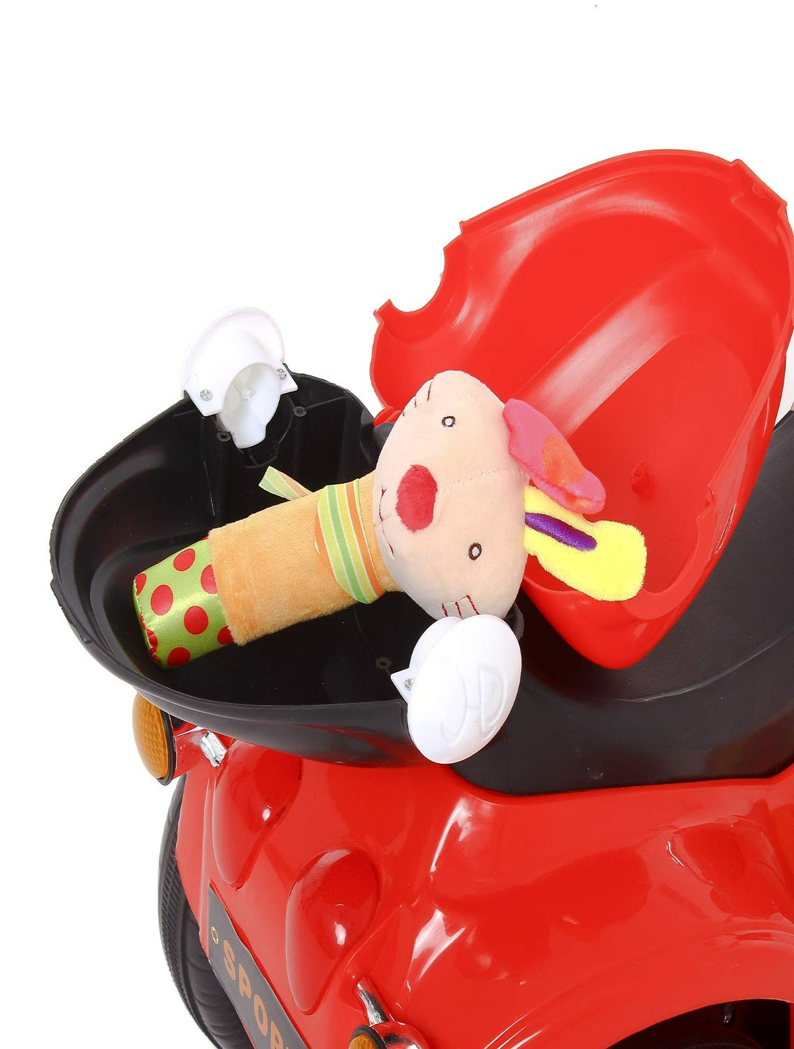 - MULTI-FUNCTIONS: 1. By pressing the built-in musical and horn button, your baby can listen to the music while riding. 2. Working headlights make it more realistic. 3. Equipped with on/off and forward/backward switches for easy ride. 4. The back storage compartment can be opened and you can put in suitable toys.
