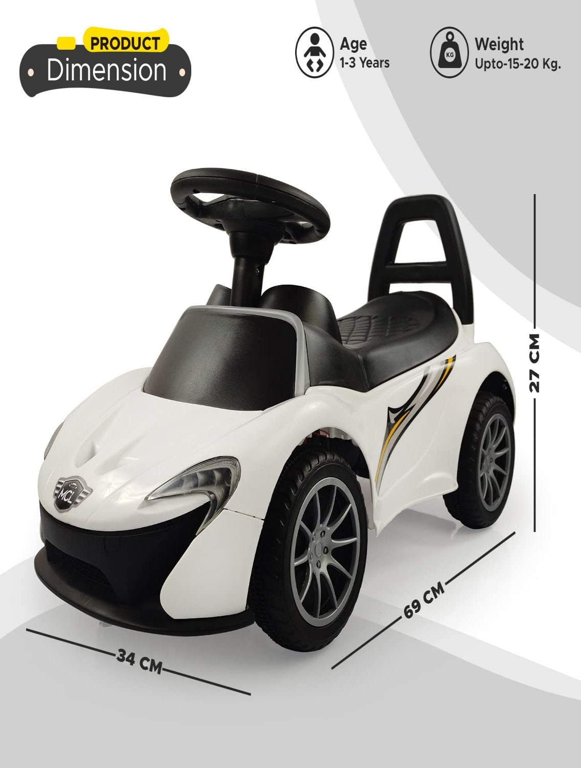 - Dimension: Length, breadth, and height are 69cm,30cm, and 39cm, respectively. A wheel width of 5cm and a diameter of 14 cm ensures good balance for your child for safety measures.