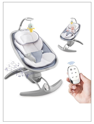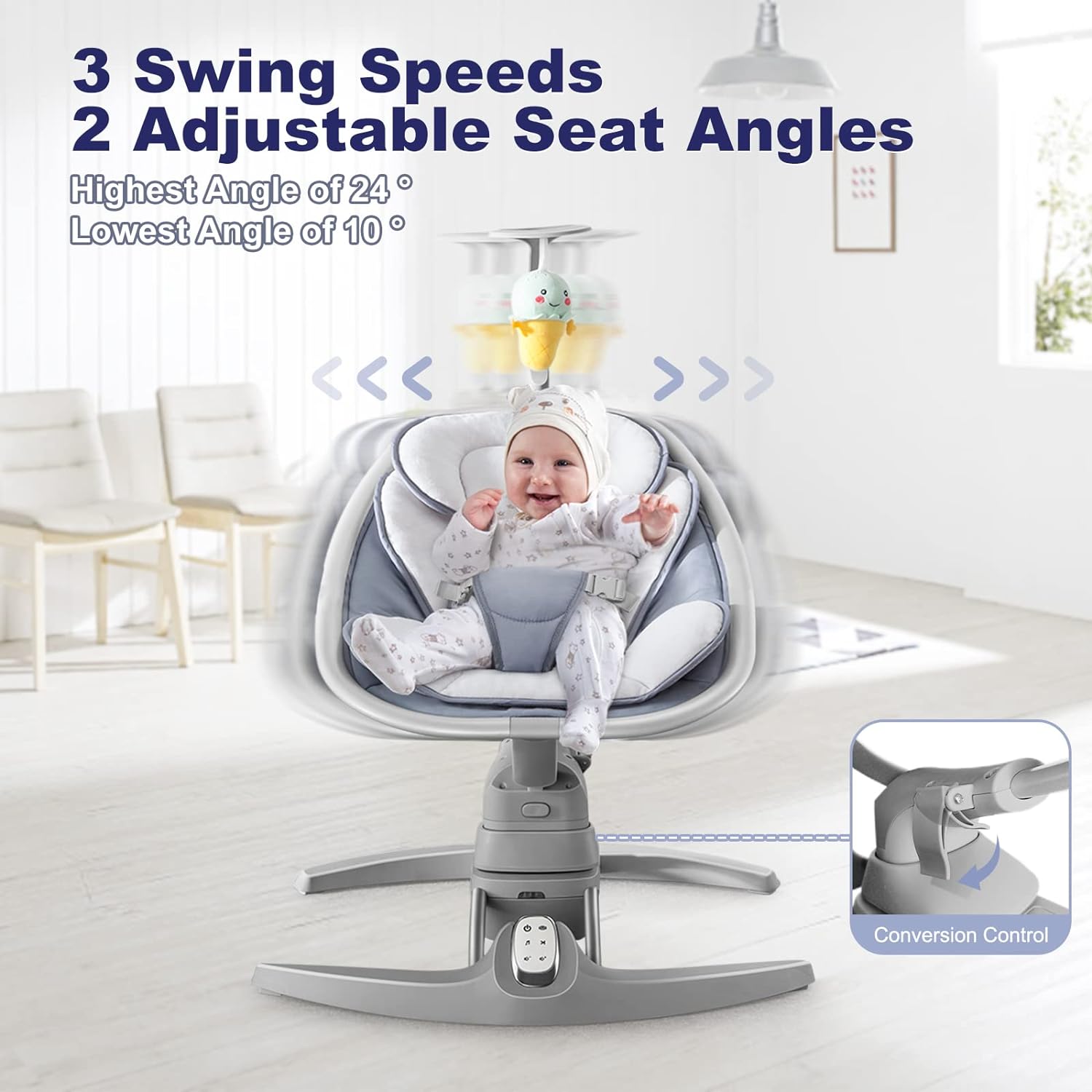 Baby Swings Easy to Assemble, Outdoor Portable, Music Speaker with 8 Preset, Remote Control-Grey
