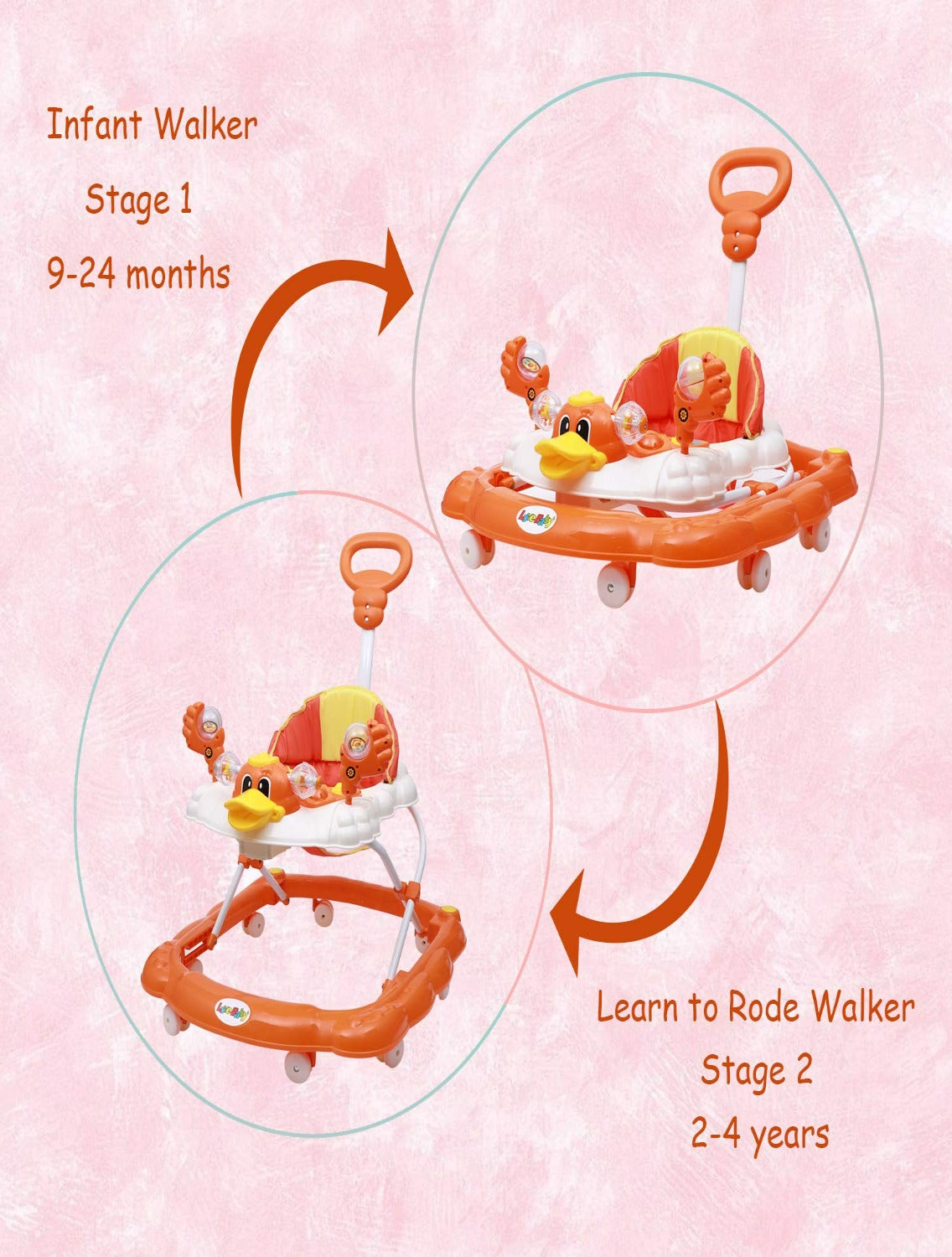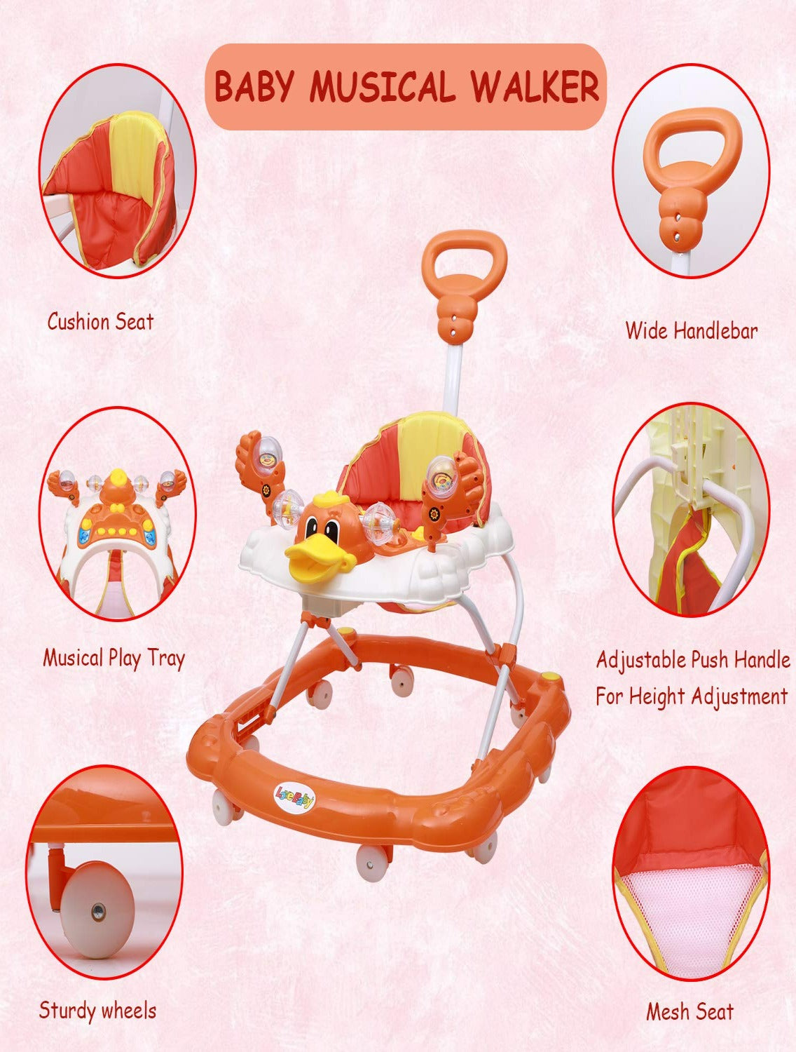 Height Adjustable Musical Walker With Parental Handle (BJ 305-H ORANGE)
