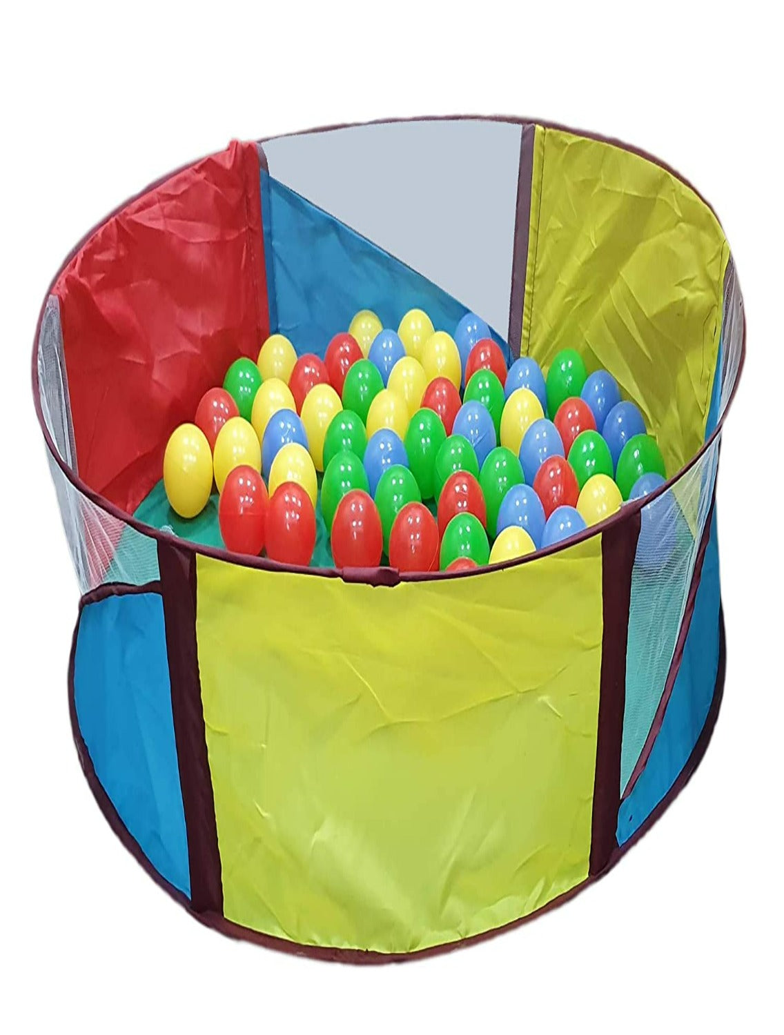 Play tool has brought you this fun ball pool. Its a ball pool which opens up to a small play zone for kids upto 3 years of age. Kid can play with toys and balls inside It do not take much space and it is light weight and made of wires. The product can be folded back into a small piece which can be put inside a box or bag. It helps in developing the ability of kids to recognize colors