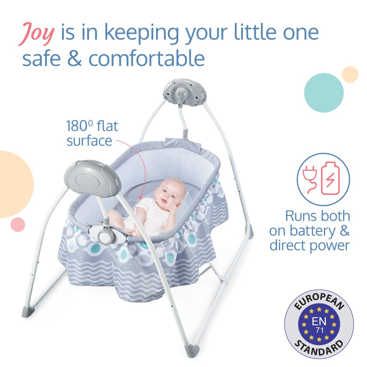 - Multi-Function Baby Cradle: ThisElectric cradle comes with a soft & comfortable bed,Suitable for a newborn baby (weight capacity 25KG). Folding bracket can be easily placed inthe car, easy to carry. Certified as per European safety standard EN 71