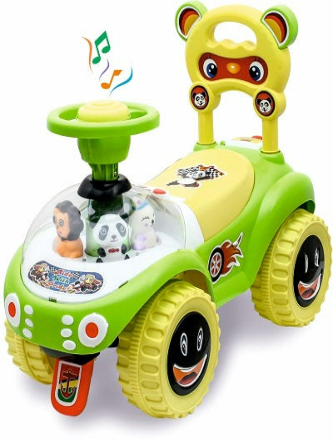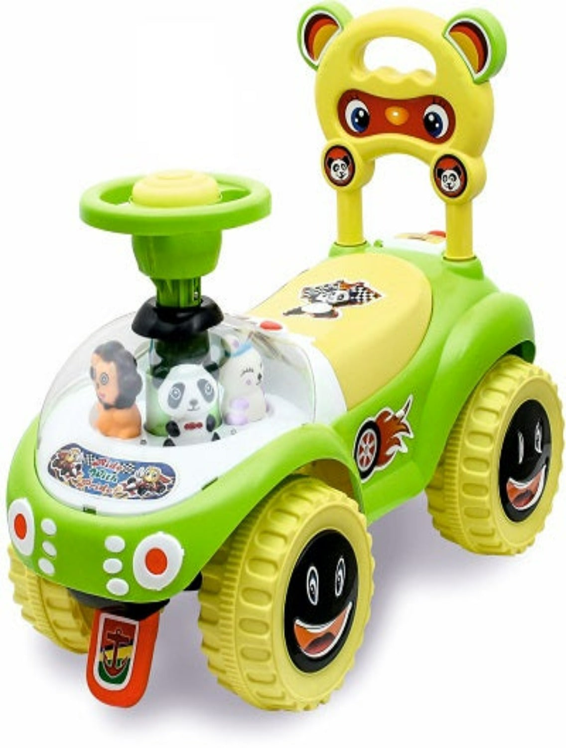 - Steering wheel - Manual foot operated push car with functional steering wheel