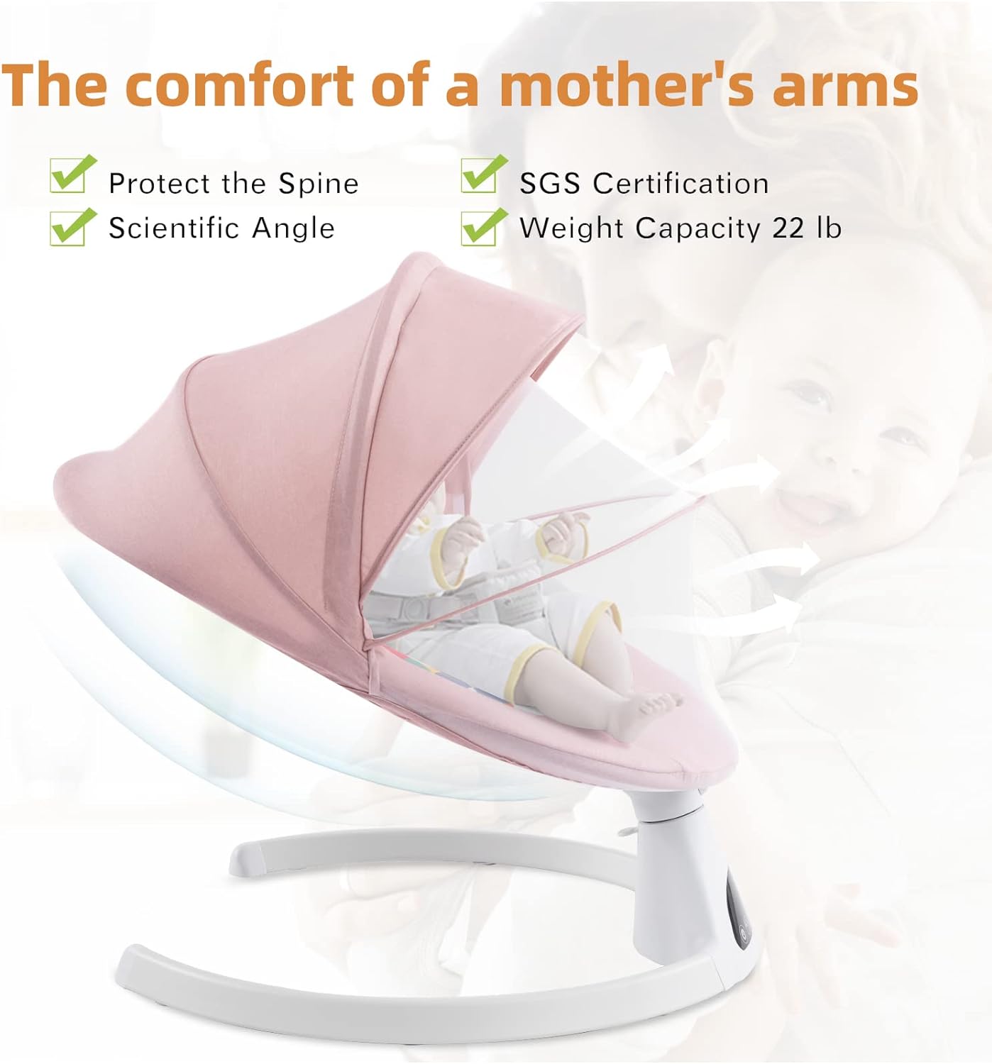 - 5 Amplitudes for Baby Swings for Infants: Jaoul electric baby swing is finished with 5 different swing amplitudes. To better protect your newborn baby's safety, the swing level between each amplitude is designed to be a very gradual difference. You could adjust the settings to find the swing range and frequency that your baby likes.