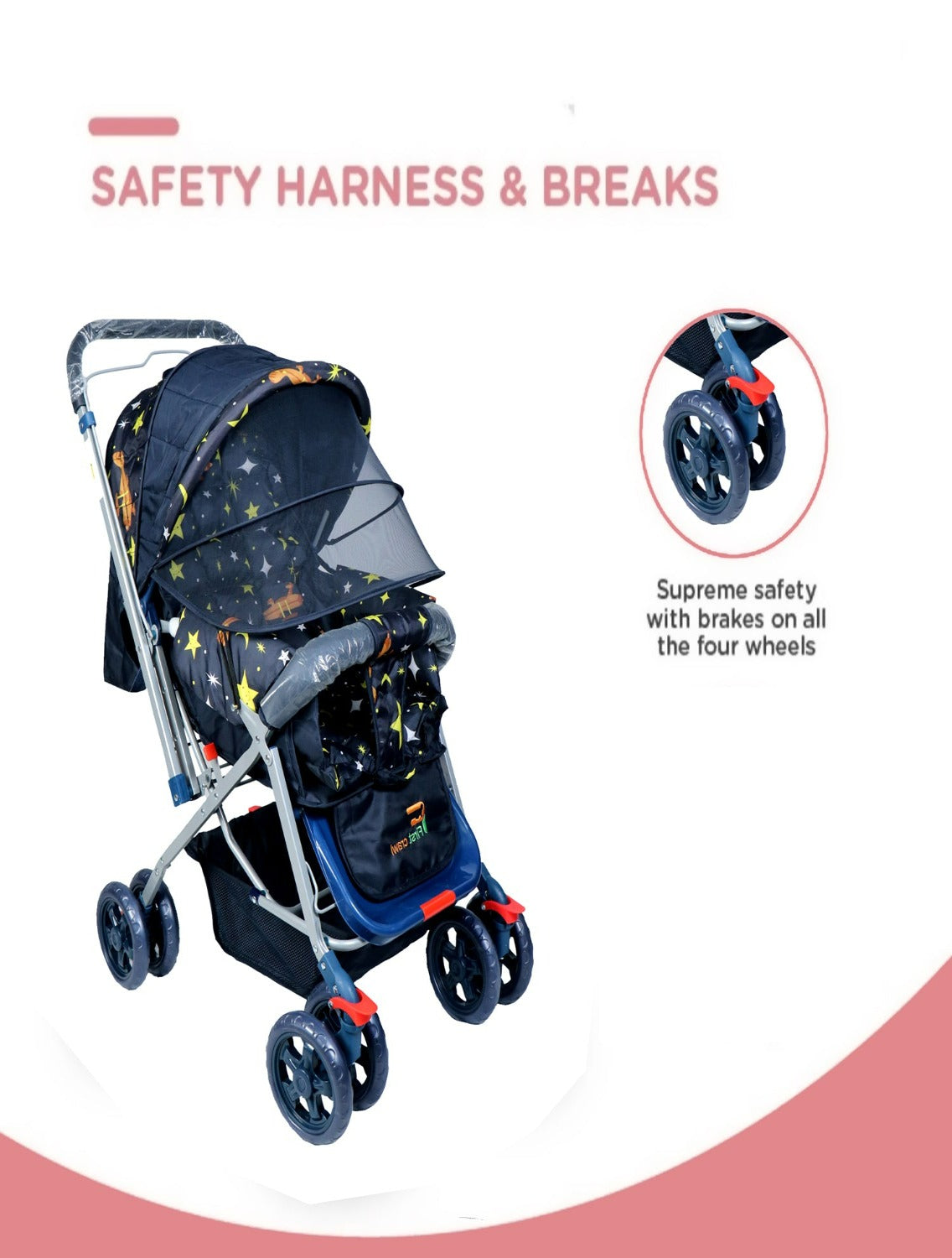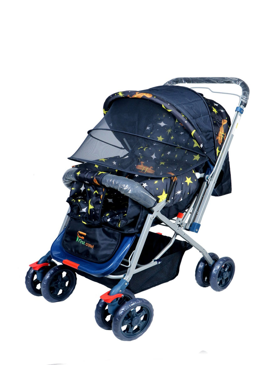 FIRSTCRAWL BABY STROLLER WITH MOSQUITO NET & REVERSIBLE HANDLE - GALAXY BLACK