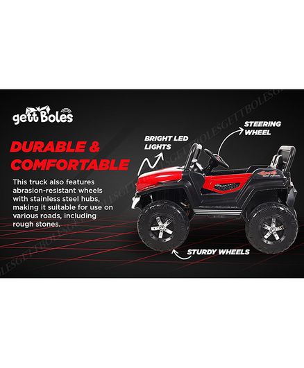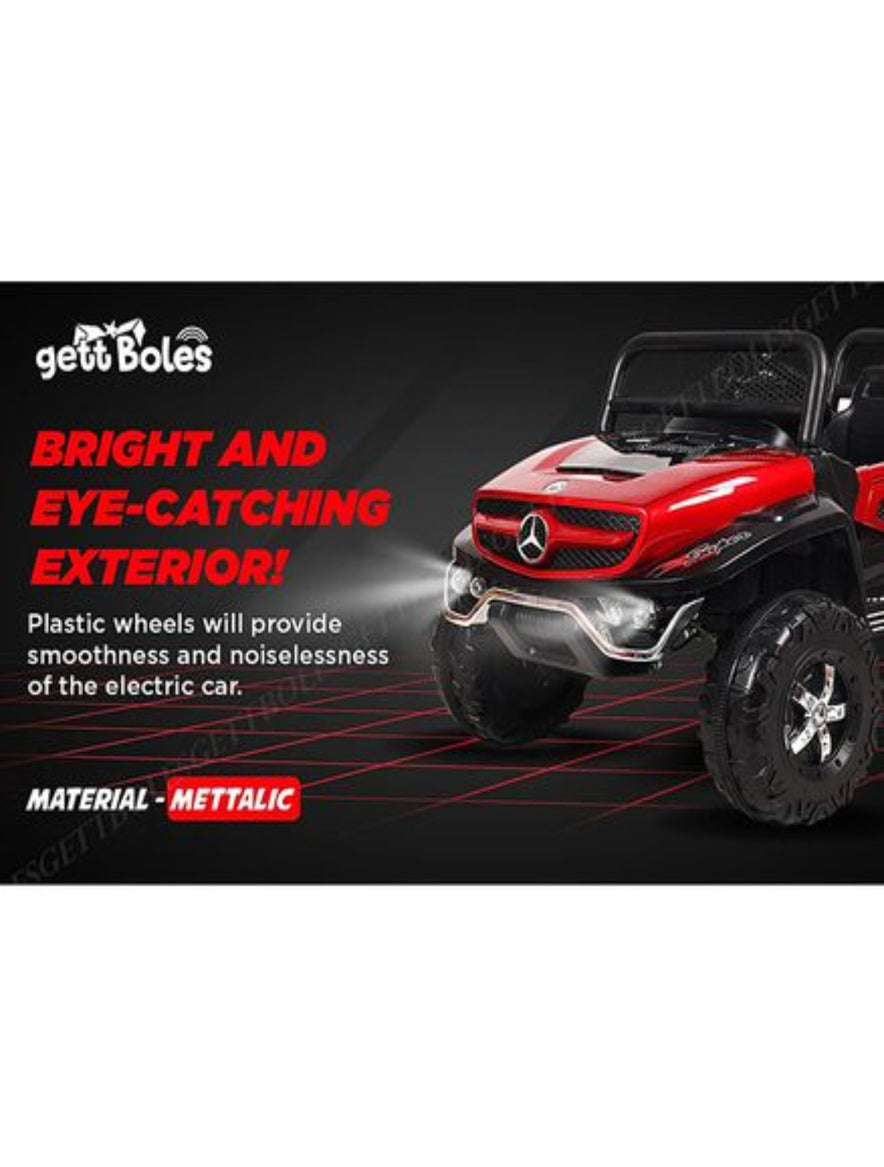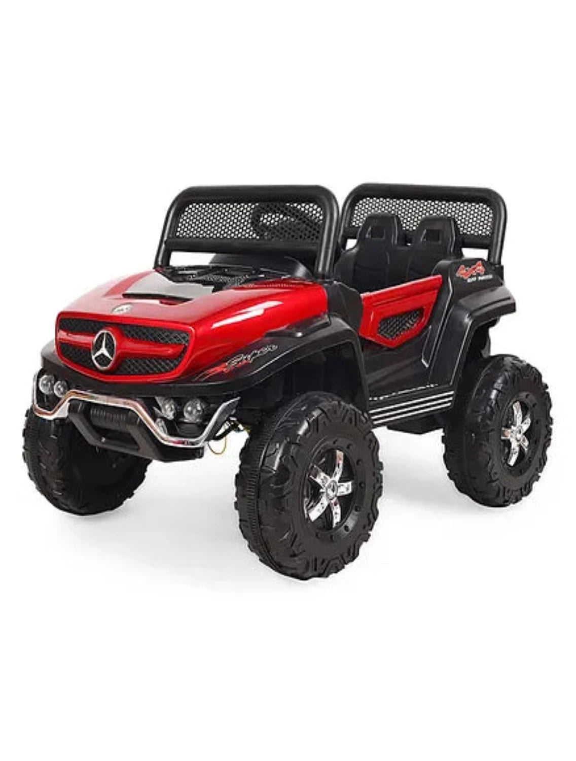 Battery operated ride on electric jeep for kids. This jeep can be operated manually and also with remote. Jeep comes with music system compatible with aux, pen drive and sd card. In their early years kid can sit in the jeep car and parents can control it through Bluetooth remote as kids grow they can ride it manually using foot accelerator. This jeep is operated with 2 batteries and 2 motors. Ride on jeep will run at a speed of 4-5km/hr. Kid will ride it on any flat surface. This jeep is made up of non toxic plastic and very safe for kids to drive.