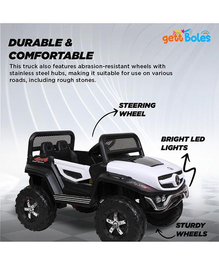 GetBest Battery Operated Ride on Jeep for Kids with Music Lights and Swing Electric Remote Control Ride on Jeep - White