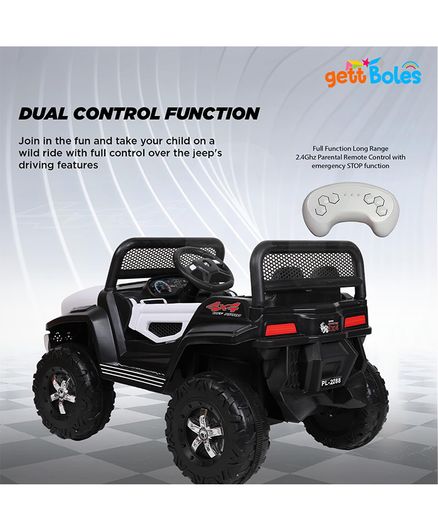 - In their early years kid can sit in the jeep car and parents can control it through Bluetooth remote as kids grow they can ride it manually using foot accelerator