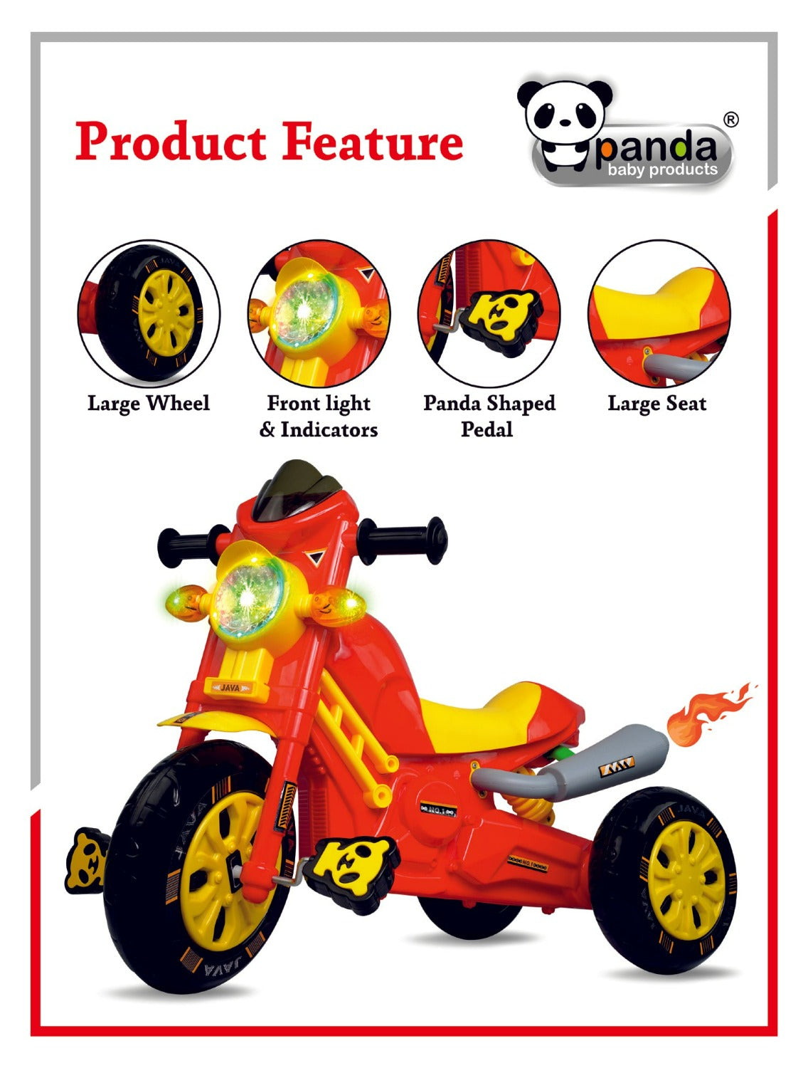 - 👶 Panda Java Premium Push Ride-on Car is constructed by entirely Premium Virgin PVC Plastic material which features non-toxic and odorless. It is secure for your baby to ride on freely.