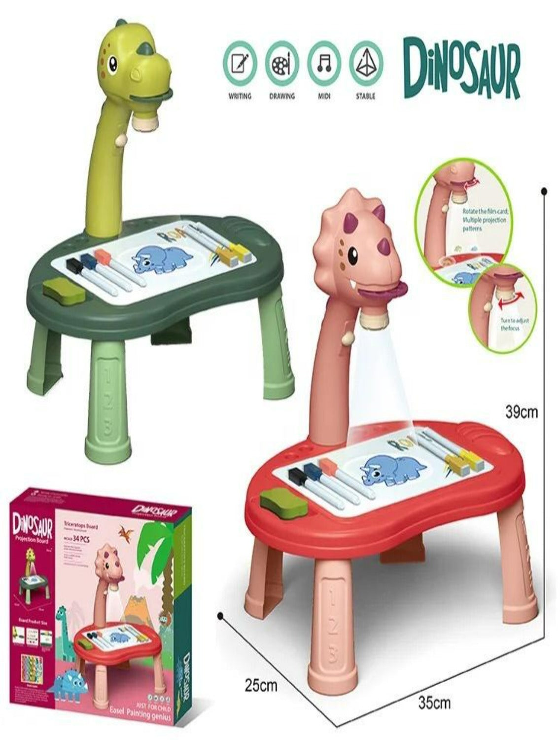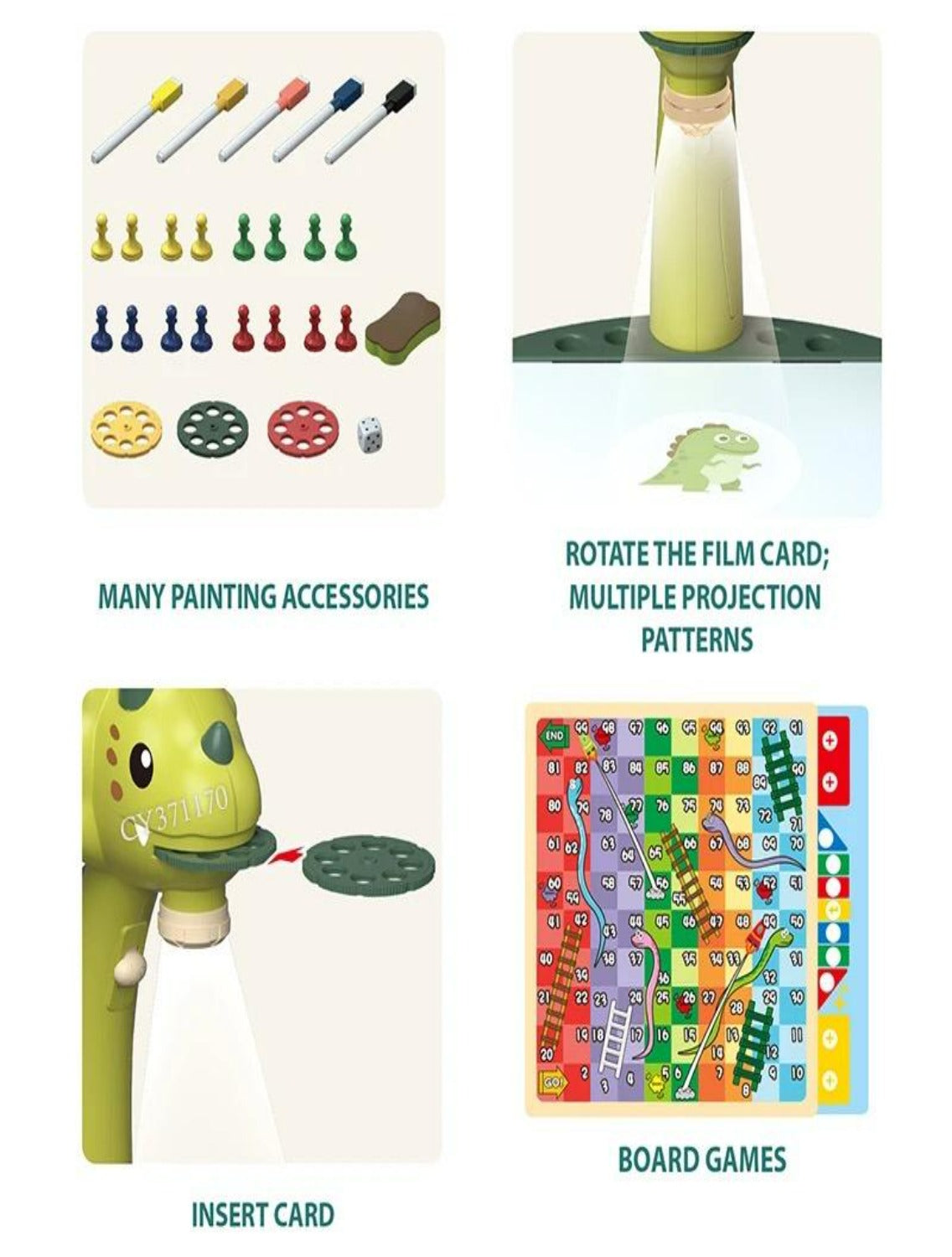 Learning BOARD 34pcs dinosaur kids drawing projector table with light -GREEN