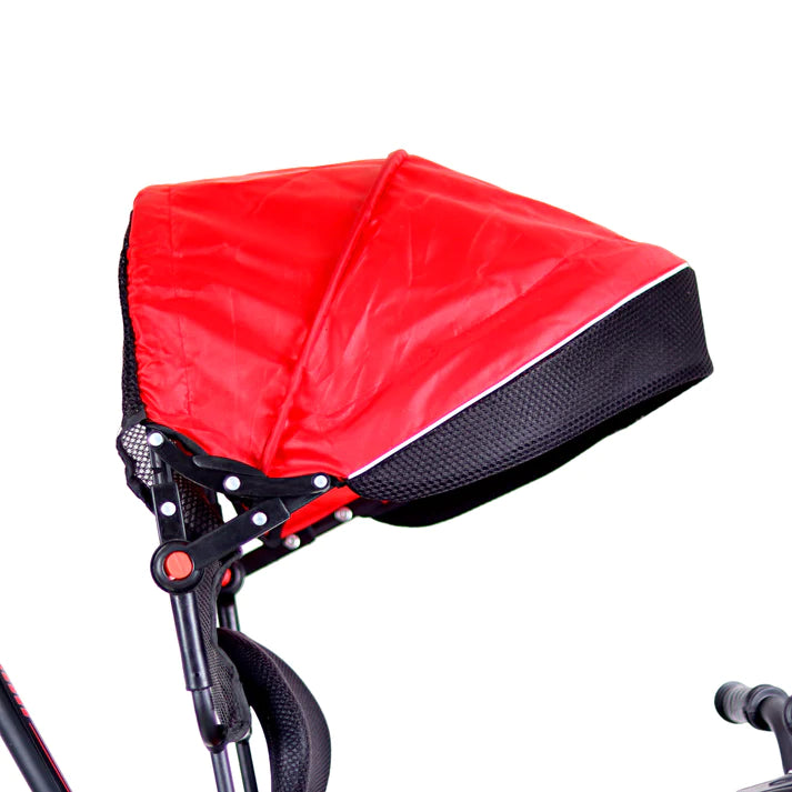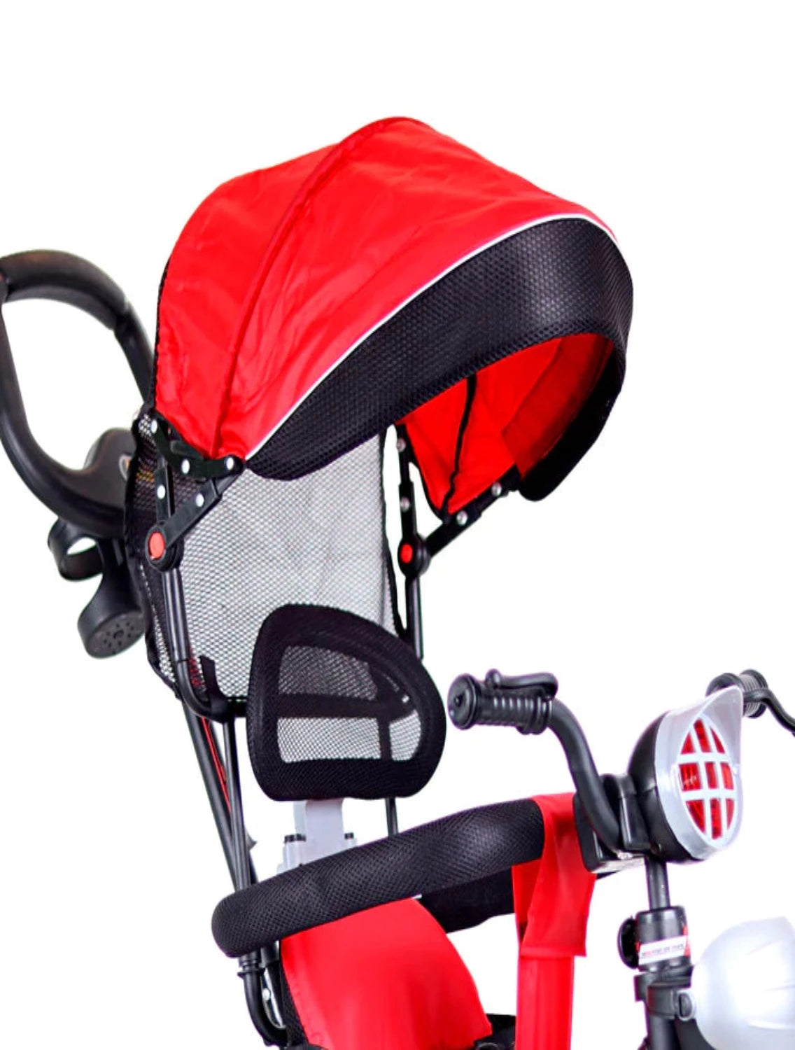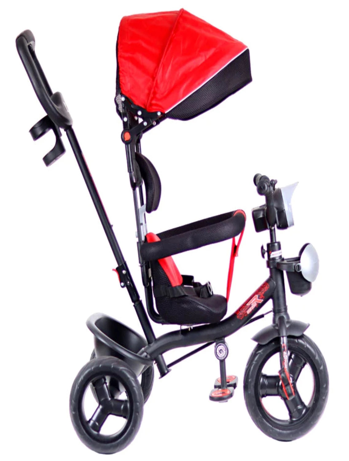 Luusa R9 Power 500 Tricycle for Kids with Hood and Parent Handle Black-Red