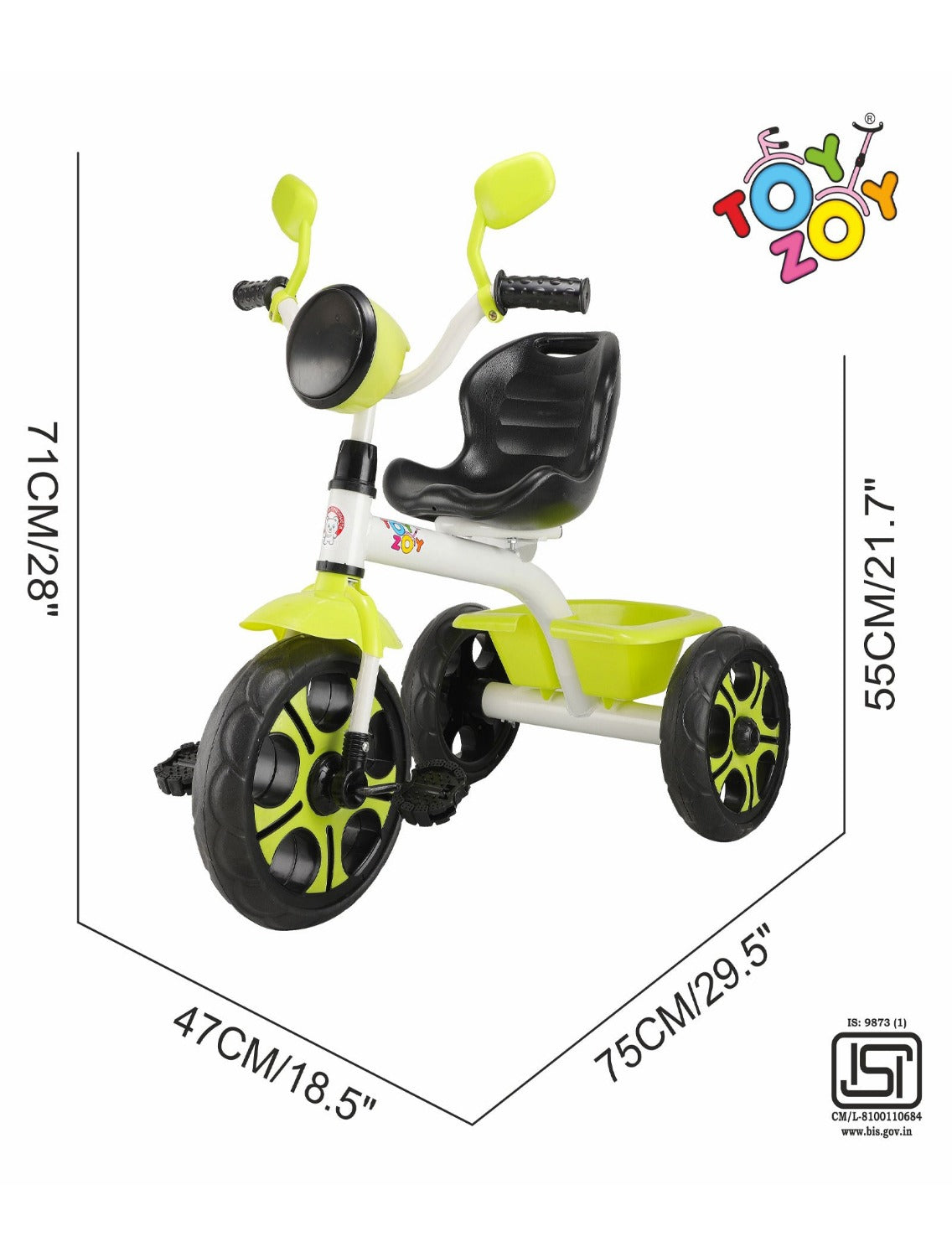 Toyzoy is a brand whose mission is to help parents and children discover the world together, providing products that combine innovative solutions and best quality. create with passion, our mission to provide happiness and best quality for Kids, TOYZOY tricycle is designed for children aged 1.5 Years to 5 Years. With the possible product configurations it can be easily adapted to the age and height of the child. It has a mechanism connecting the parent handle with the child's handlebars, allowing the parent to keep full control over the tricycle, if necessary, BASKET - You can Load the Trike basket with favorite toys or enjoy watching your toddler fill it with treasures from the outdoors, EASY - It is available to anyone through ease of use, attractive price and prompt delivery, SMART - they combine the best features, high quality and modern design. Children's safety is our priority, which is why our products meet all international safety requirements. We take care of every detail, and children inspire us as a source of inexhaustible ingenuity and determination to explore new opportunities, Thanks to the folding footrest and the ability to place the seat forward or rear facing, the tricycle can also be used as a stroller, Easy Clip Assembly - Easy To Assemble and Easy To Carry Anywhere, Puncture Proof Tyres, Adjustable Seat, Soft Grip Handle, Easy Use For Fun, Box Contains Tricycle; Bell; Practical bag, Basket.