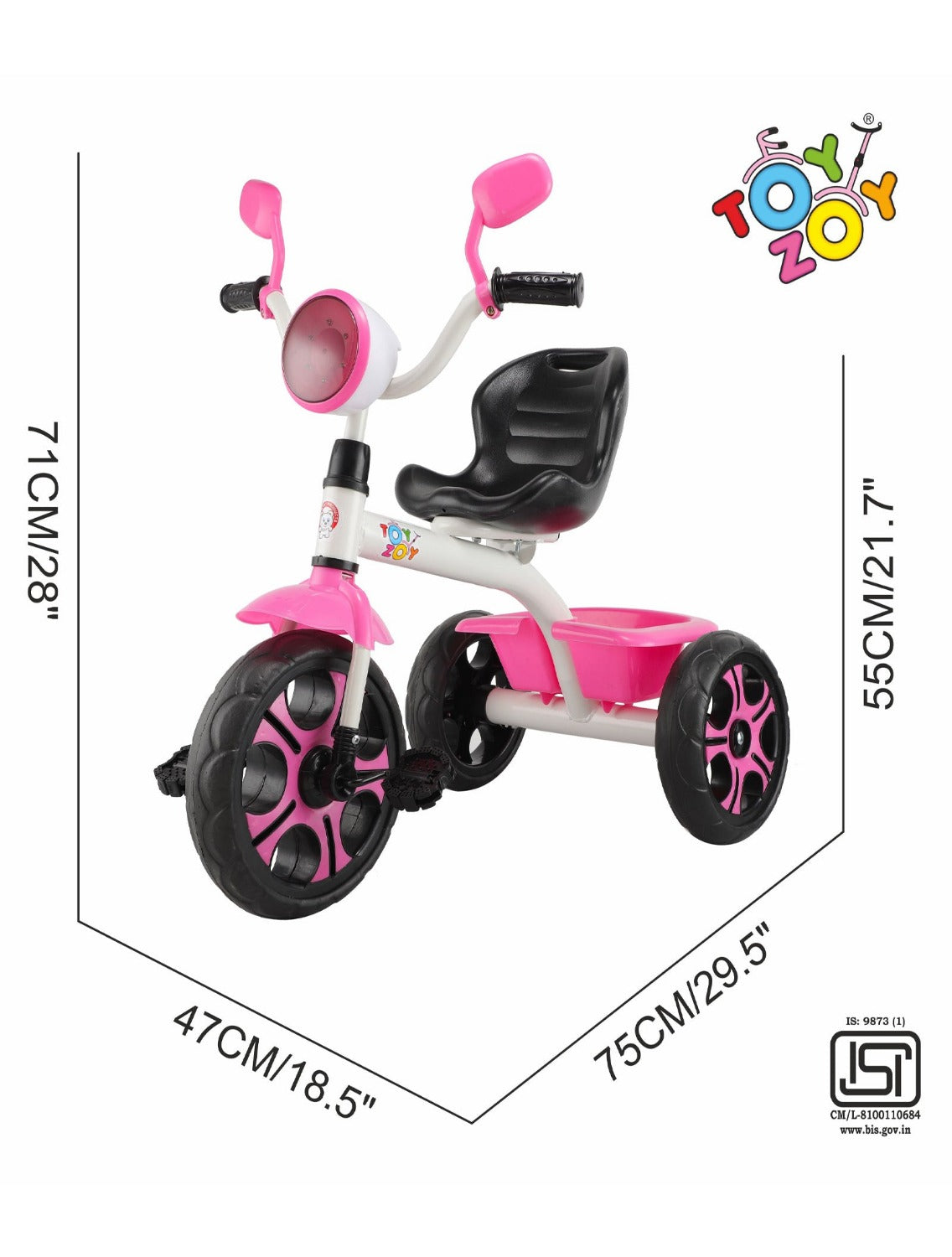 Toyzoy is a brand whose mission is to help parents and children discover the world together, providing products that combine innovative solutions and best quality. create with passion, our mission to provide happiness and best quality for Kids, TOYZOY tricycle is designed for children aged 1.5 Years to 5 Years. With the possible product configurations it can be easily adapted to the age and height of the child. It has a mechanism connecting the parent handle with the child's handlebars, allowing the parent to keep full control over the tricycle, if necessary, BASKET - You can Load the Trike basket with favorite toys or enjoy watching your toddler fill it with treasures from the outdoors, EASY - It is available to anyone through ease of use, attractive price and prompt delivery, SMART - they combine the best features, high quality and modern design. Children's safety is our priority, which is why our products meet all international safety requirements. We take care of every detail, and children inspire us as a source of inexhaustible ingenuity and determination to explore new opportunities, Thanks to the folding footrest and the ability to place the seat forward or rear facing, the tricycle can also be used as a stroller, Easy Clip Assembly - Easy To Assemble and Easy To Carry Anywhere, Puncture Proof Tyres, Adjustable Seat, Soft Grip Handle, Easy Use For Fun, Box Contains Tricycle; Bell; Practical bag, Basket.