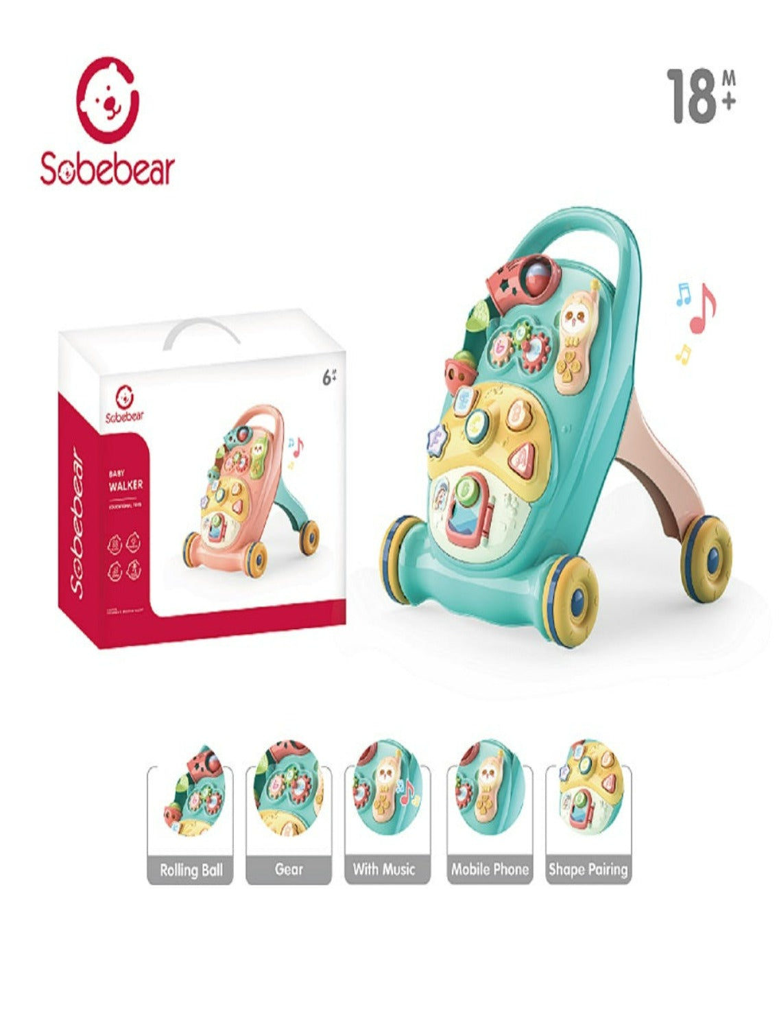 - Learning to walk: easy walker encourages first steps & invites babies to keep moving with fun music & sounds. Toys help babies to walk with inspiring sounds that will attract your baby's curiosity to keep going. Wheels work on carpeted and hard floors.