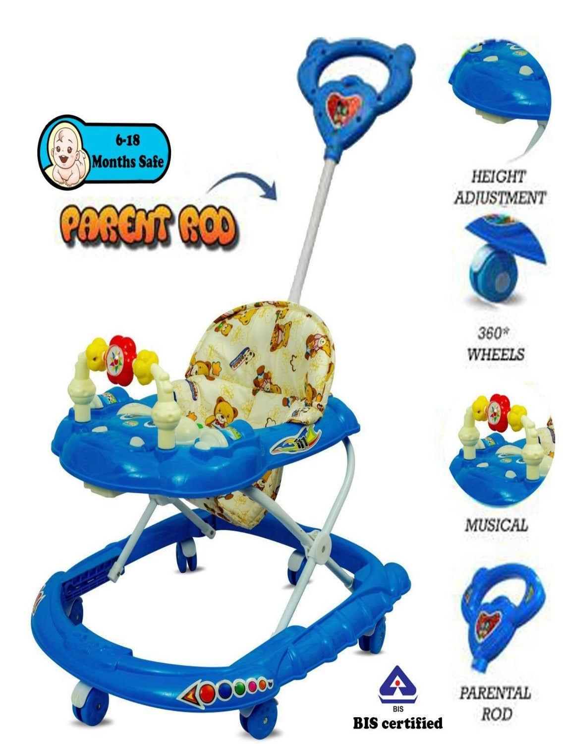 Type Baby walker Material Plastic Manufacturer recommended age 6 months and up Musical yes Country of Origin India Item Weight 4 kg Parental Handle