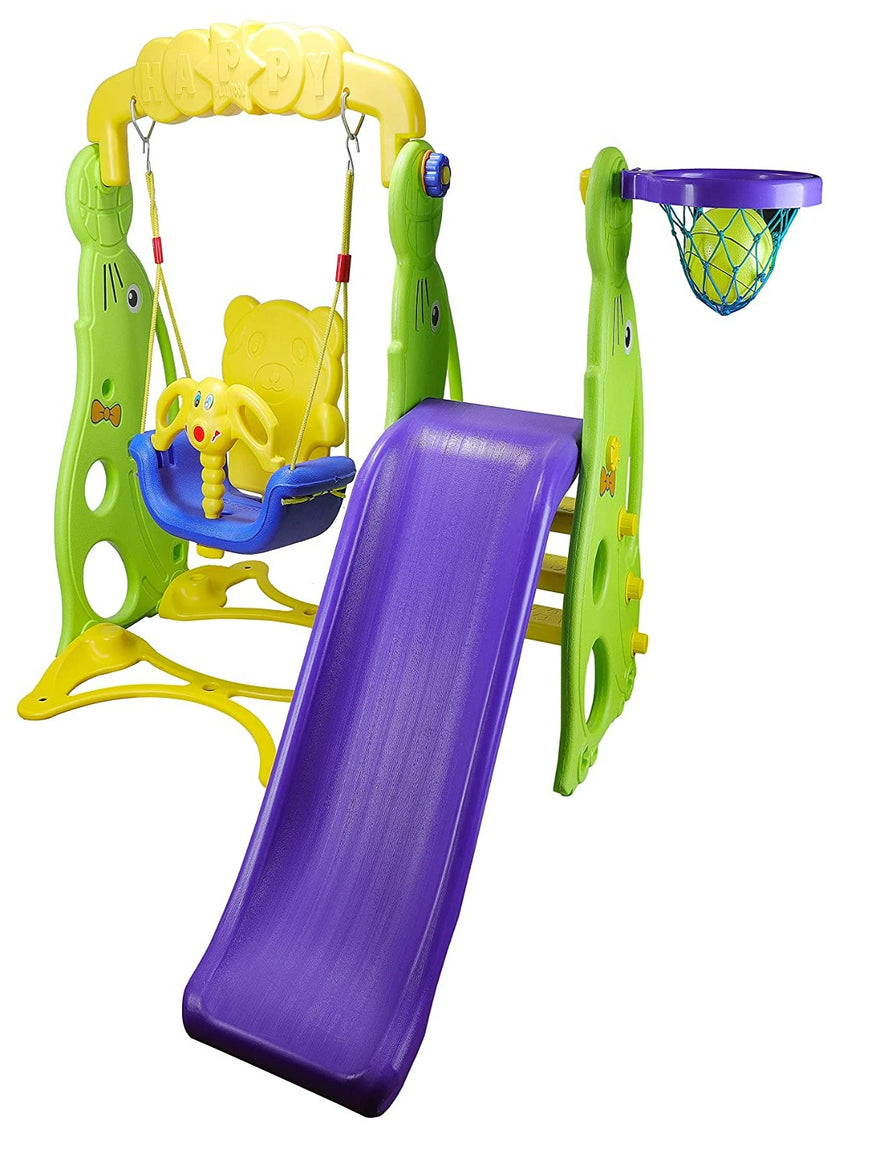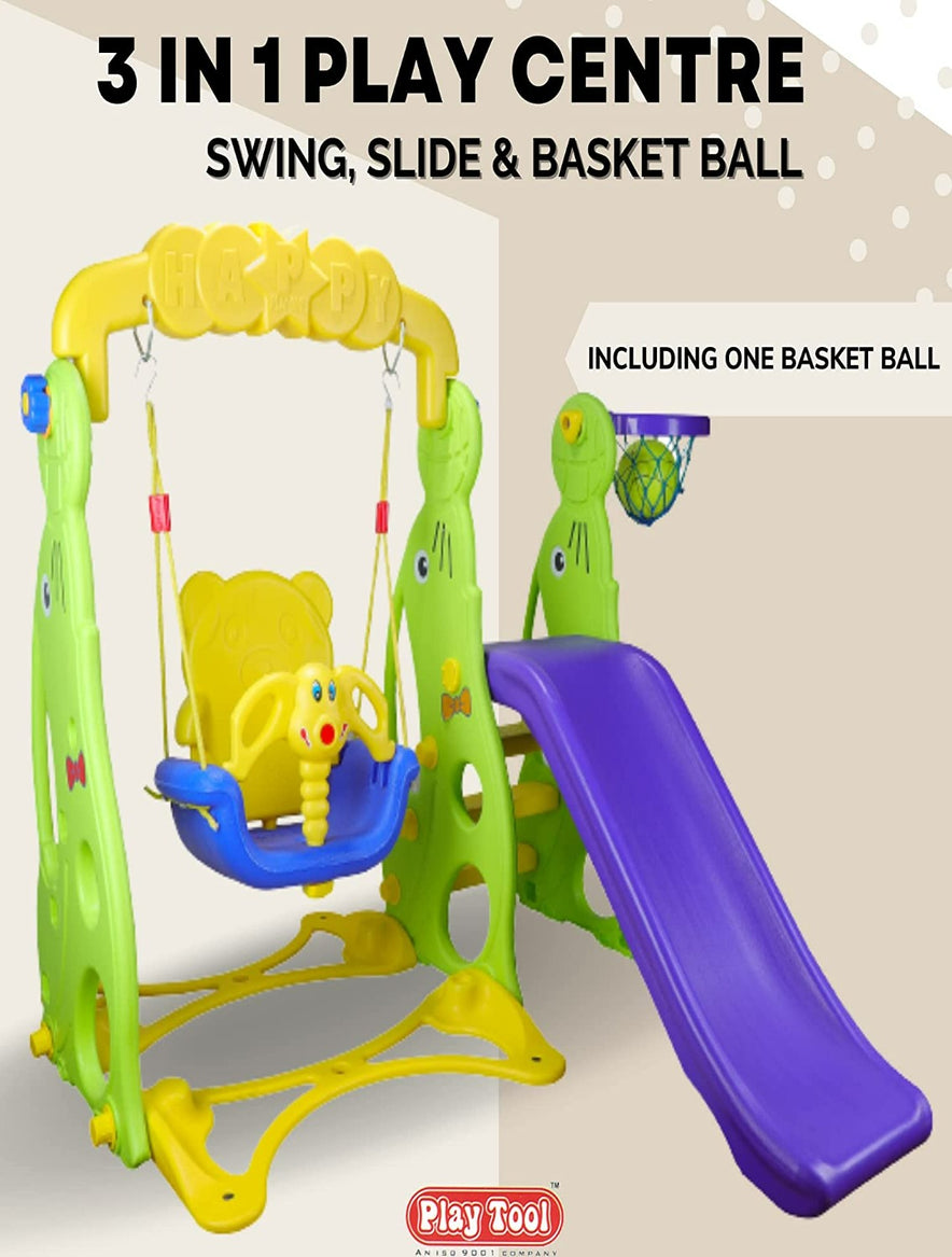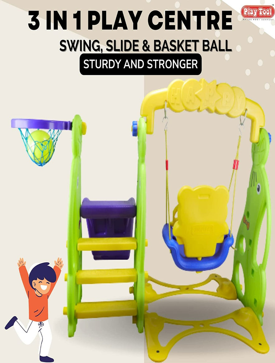 - A. Specification: Your little one can enjoy 3 games in the single play center. Best combination of slide, swing and basketball practice.