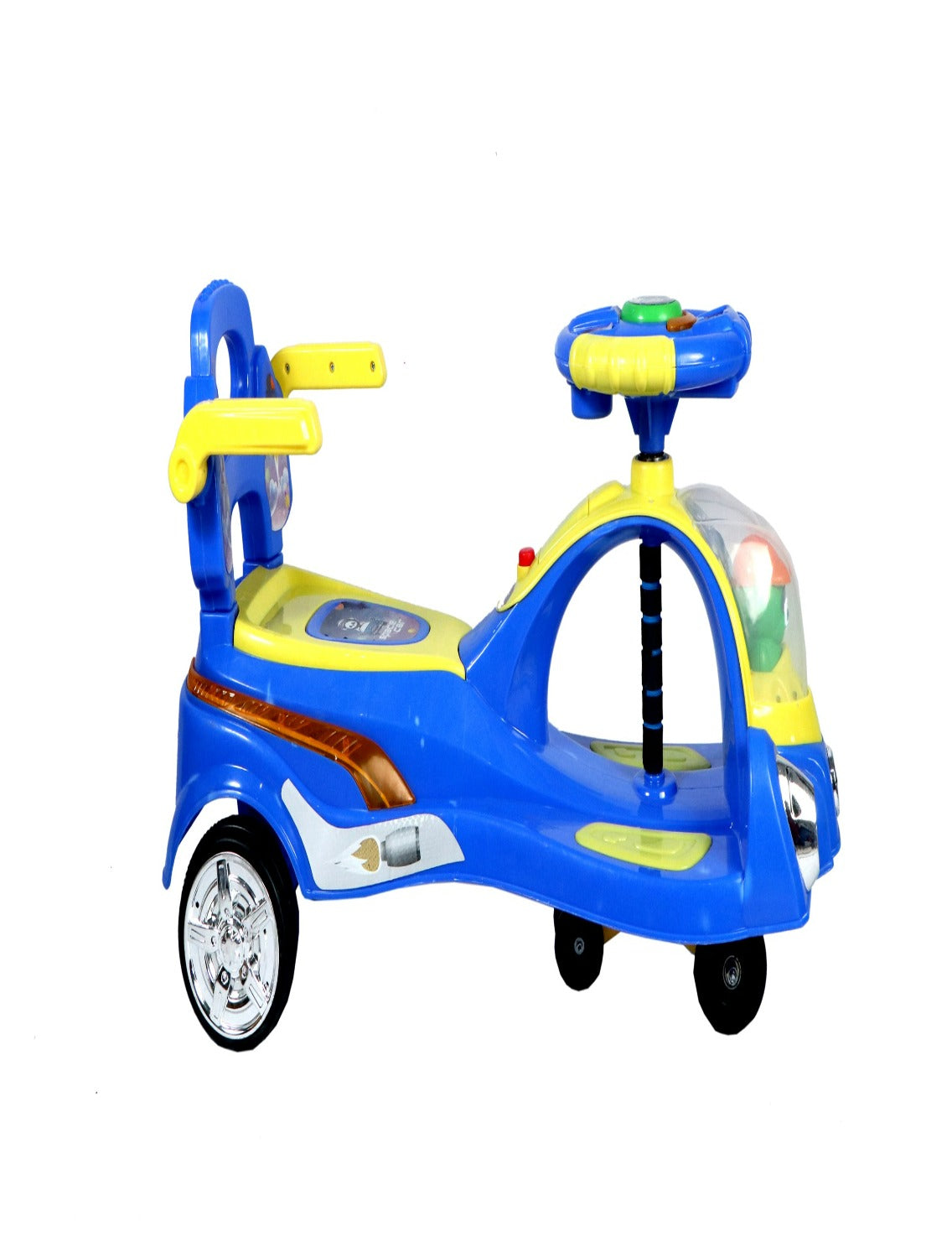 • Ride On Magic Car: This Ride on Magic Swing Car come with stylish look, effortless operation with no gears, PP wheels, Steering Wheels, Music and Led Strips, in addition to the thrill of driving this ride on toy car, your child will be able to develop and refine gross motor skills like balancing, coordination, and steering! It also encourages kids to be active and independent