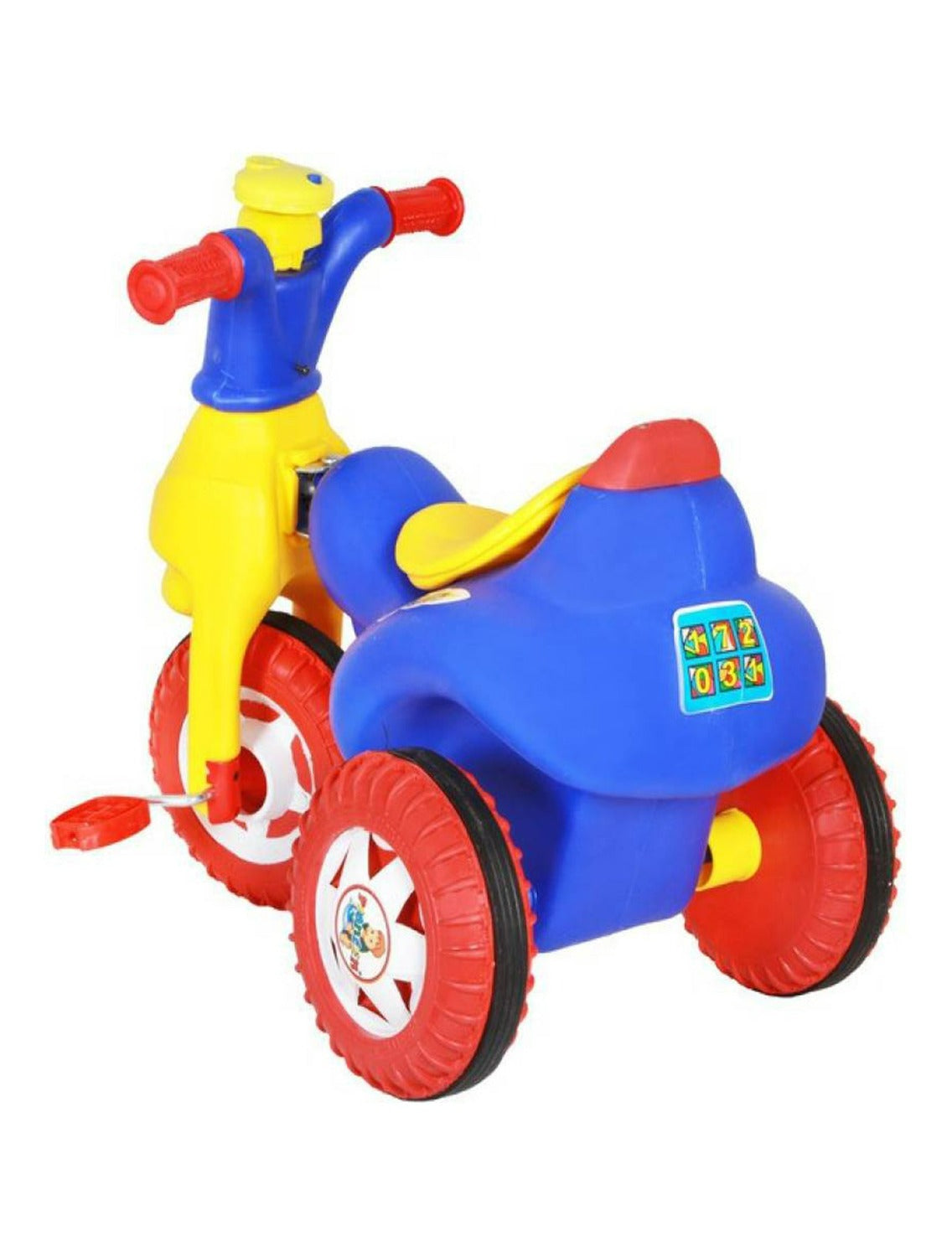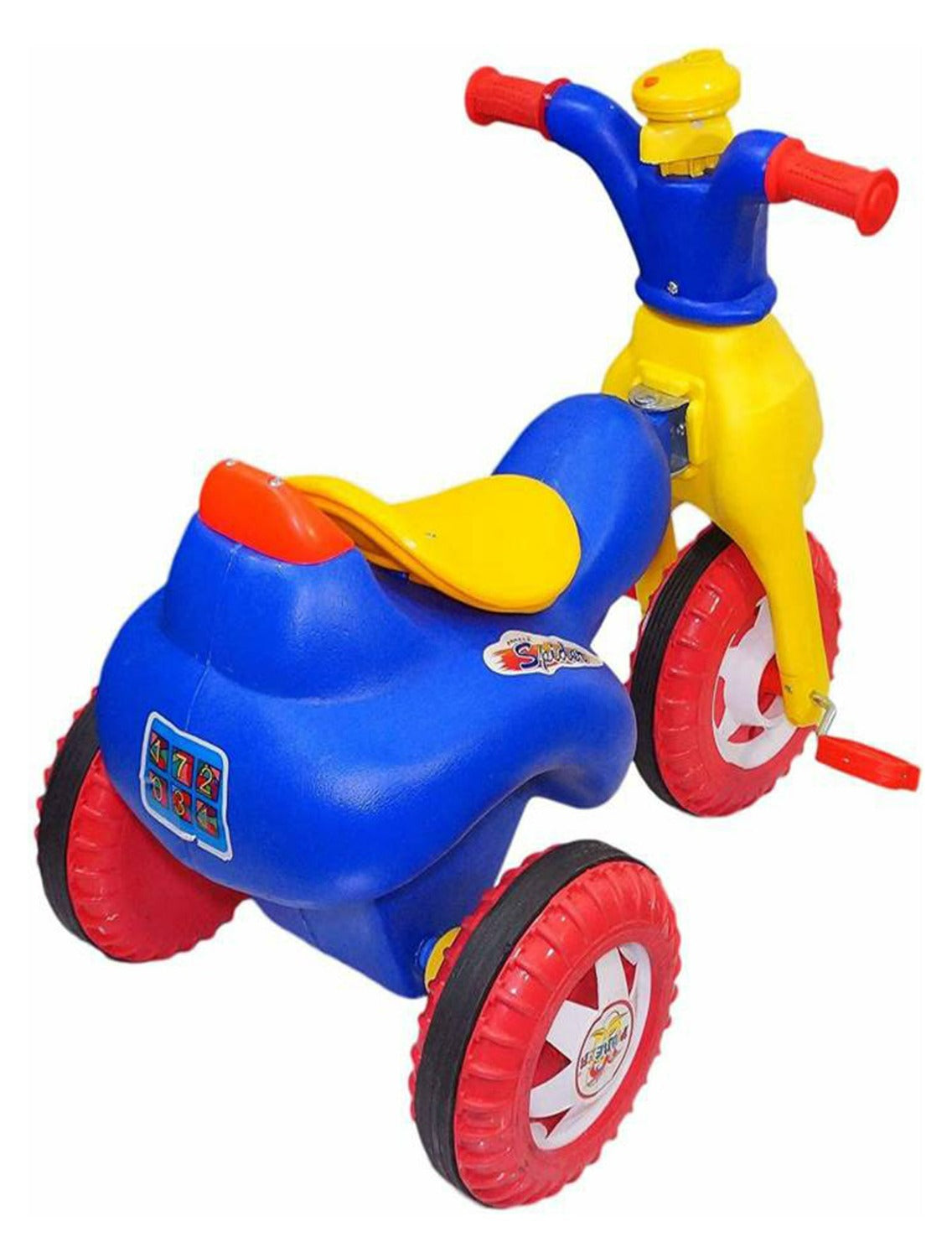Watch your toddler zoom everywhere with the tricycle and enjoy their childhood. It is made with good quality material and is sturdy to drive. The spacious seat of the tricycle gives your child a wide area to be comfortably seated. The easy grip handle bar ensures the child's hand does not slip during cycling. The non-slip pedals help to give a firm grip on peddles. Let your child zoom and have fun on this comfortable and funky tricycle.