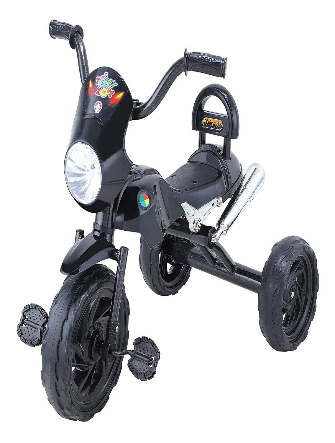 Toyzoy tricycle is designed for children aged 2 to 5 years. With the possible product configurations it can be easily adapted to the age and height of the child. It has a mechanism connecting the parent handle with the child's handlebars, allowing the parent to keep full control over the tricycle, if necessary. Thanks to the folding footrest and the ability to place the seat forward or rear facing, the tricycle can also be used as a stroller. This Trike is Designed in Sturdy format of bullet with wide tyre's which help your child to balance it properly.