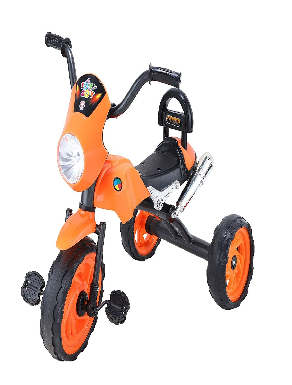 Toyzoy tricycle is designed for children aged 2 to 5 years. With the possible product configurations it can be easily adapted to the age and height of the child. It has a mechanism connecting the parent handle with the child's handlebars, allowing the parent to keep full control over the tricycle, if necessary. Thanks to the folding footrest and the ability to place the seat forward or rear facing, the tricycle can also be used as a stroller.This Trike is Designed in Sturdy format of bullet with wide tyre's which help your child to balance it properly.