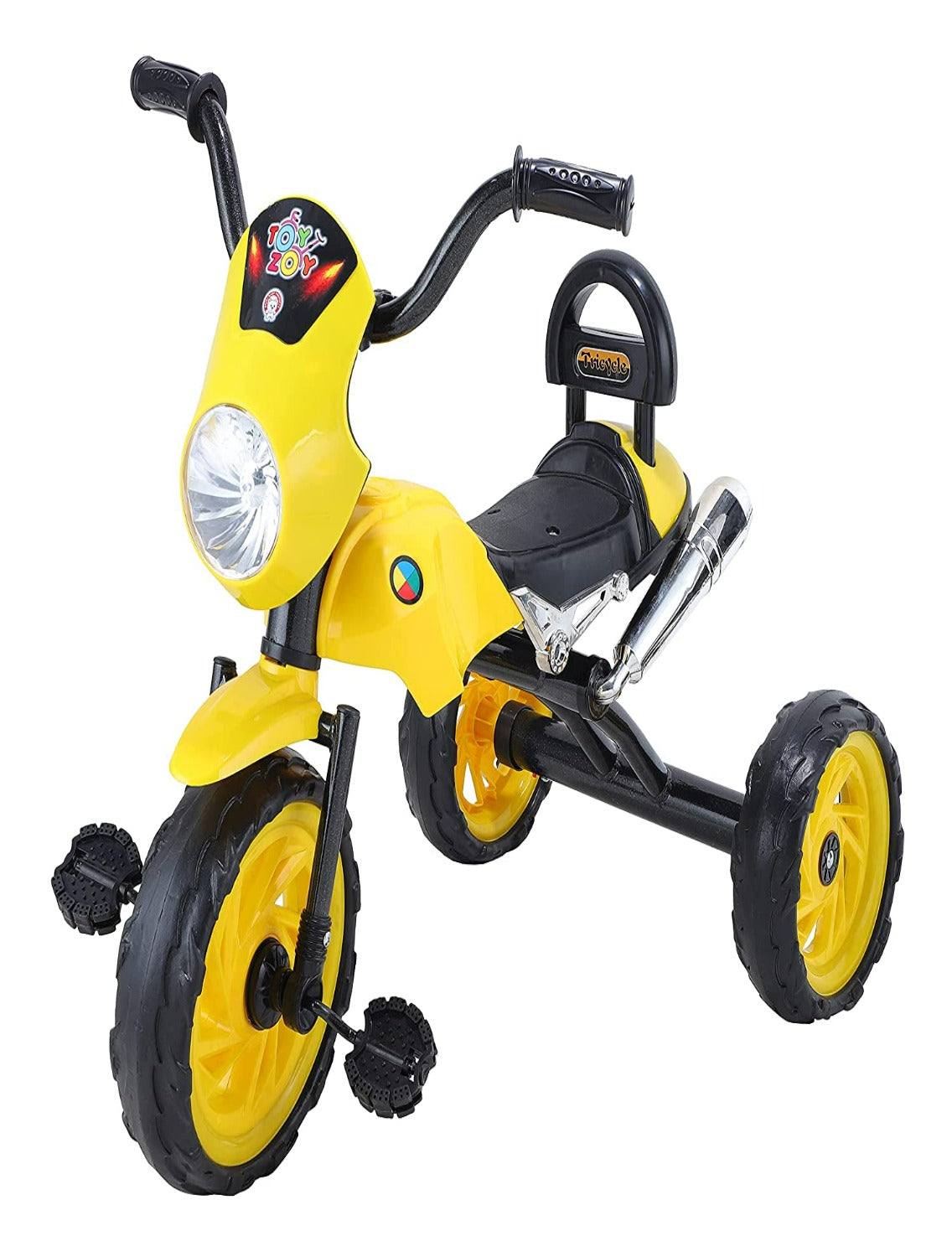 Toyzoy tricycle is designed for children aged 2 to 5 years. With the possible product configurations it can be easily adapted to the age and height of the child. It has a mechanism connecting the parent handle with the child's handlebars, allowing the parent to keep full control over the tricycle, if necessary. Thanks to the folding footrest and the ability to place the seat forward or rear facing, the tricycle can also be used as a stroller.This Trike is Designed in Sturdy format of bullet with wide tyre's which help your child to balance it properly.