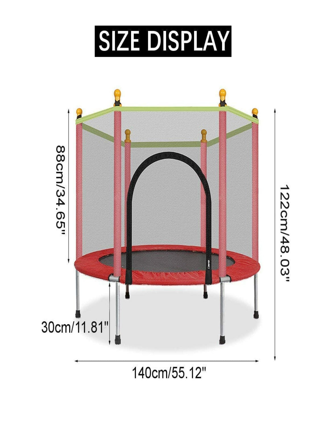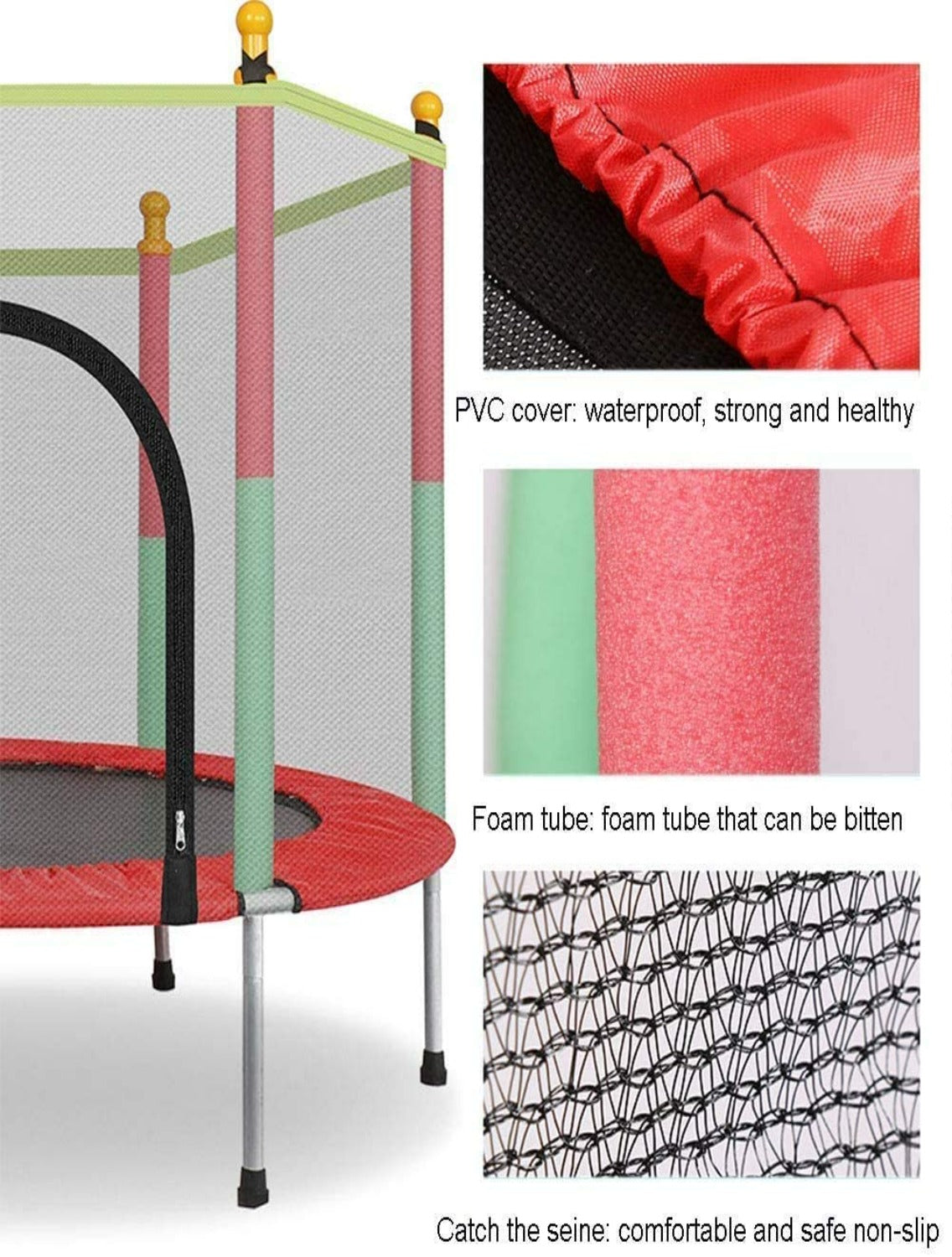 - 01 Spring Pulling Tool, 01 Spring Cover, 01 Jumping Mat, 36 Galvanized Steel Springs, 06 Arc Rods,06 Guardrail Buckle Caps, 06 Legs,06 Suction Leg Shoes, 12 Foam Safety Tubes, 01 Safety Enclosure Net, 06 Long Rods, Instruction Manual